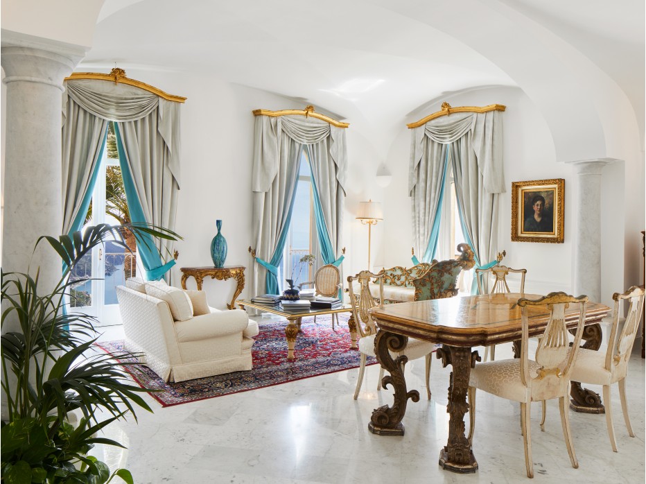 Номер с балконом и видом на море. Отдельная гостиная с камином.