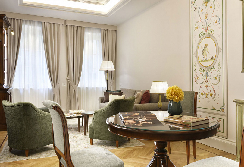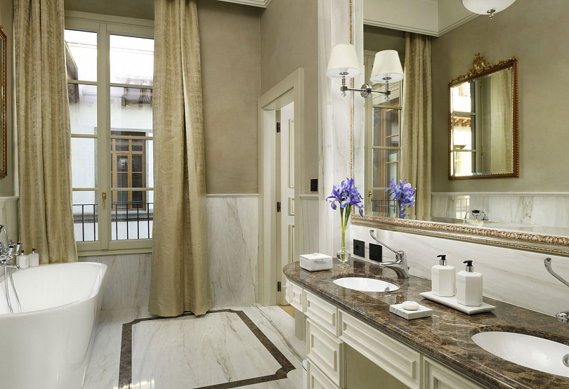 В ресторане — звезда Мишлен, средиземноморская кухня и роскошные интерьеры, в spa-центре — термальный бассейн, сауна, джакузи и процедуры для кожи от Seed to Skin, везде — идеальное сочетание современной роскоши и очарования прошлого, где каждая деталь рассказывает истории из жизни принцев, поэтов и муз, подаривших бессмертие этому городу.