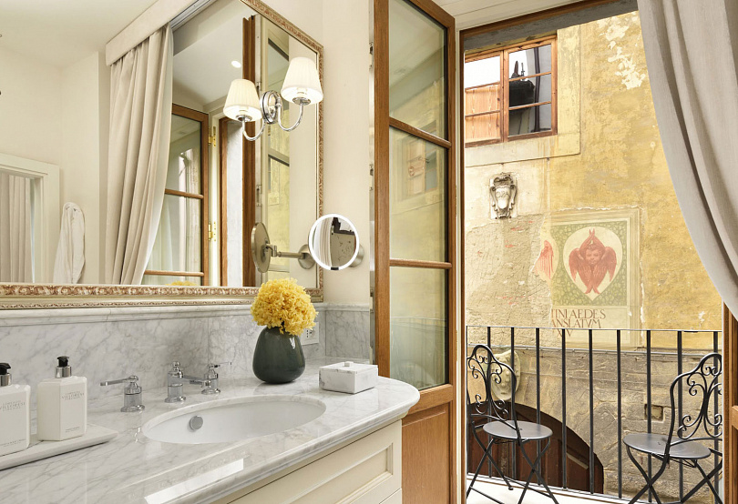 Он похож на шкатулку с драгоценностями: 13 элегантных люксов хранят эстетику Ренессанса, украшены фресками XVIII века и оригинальными тосканскими терракотовыми полами, антикварные предметы встречаются на каждом шагу, а вид на величественный купол Брунеллески дополняет картину.