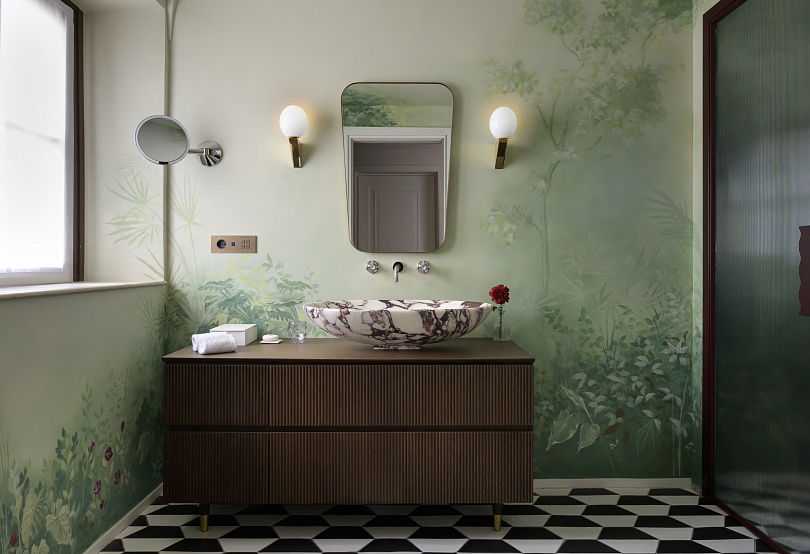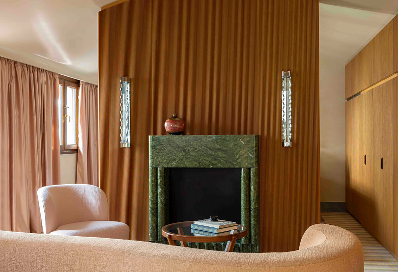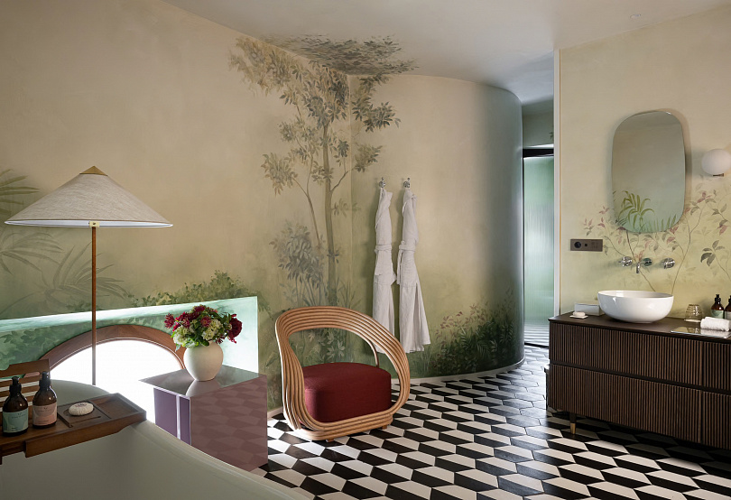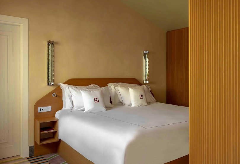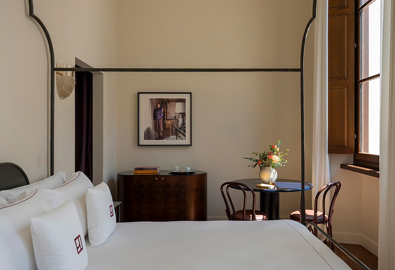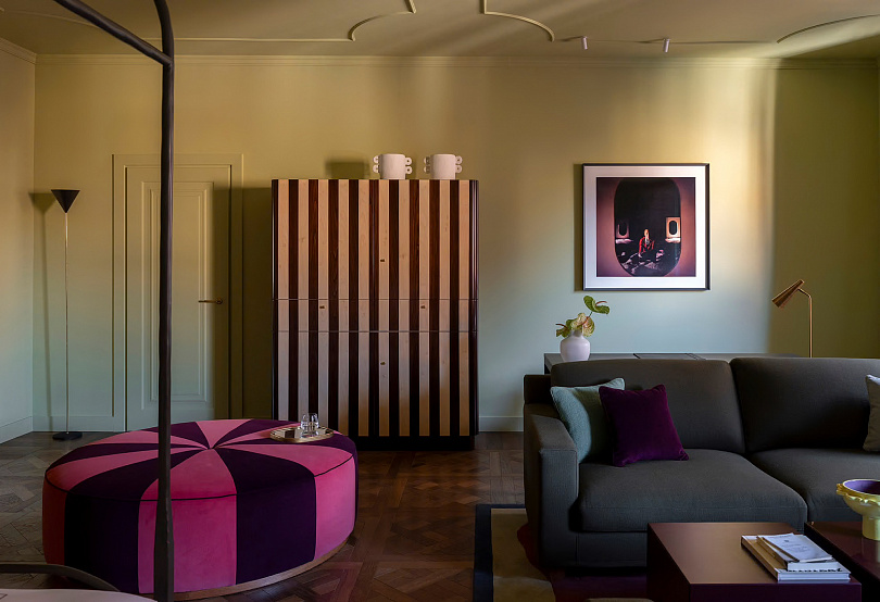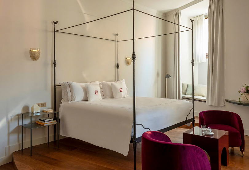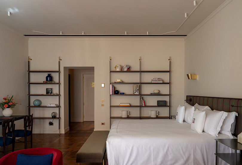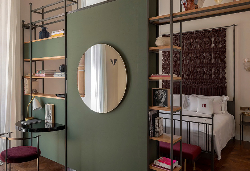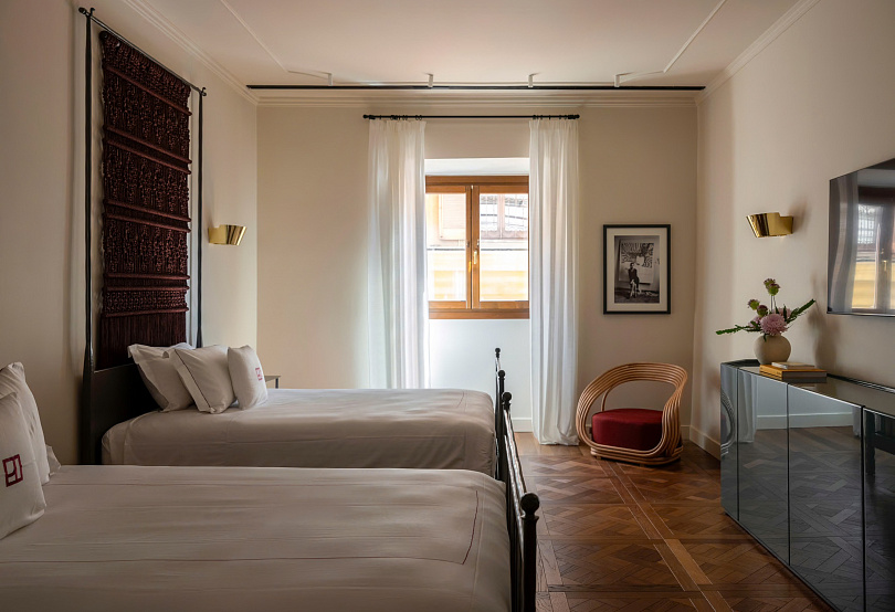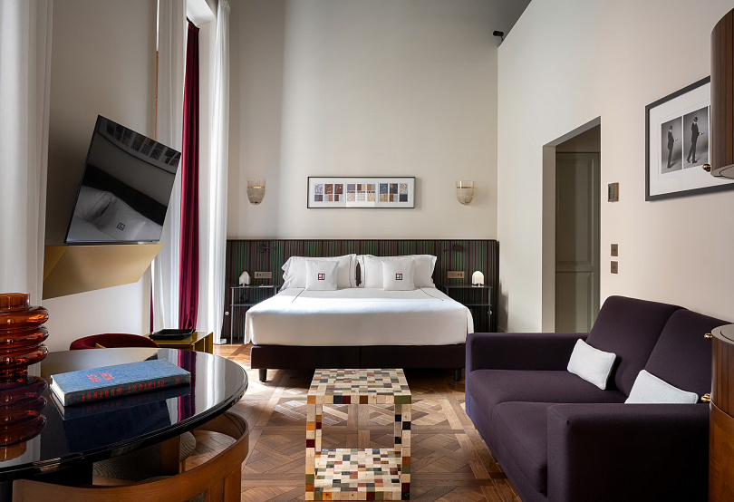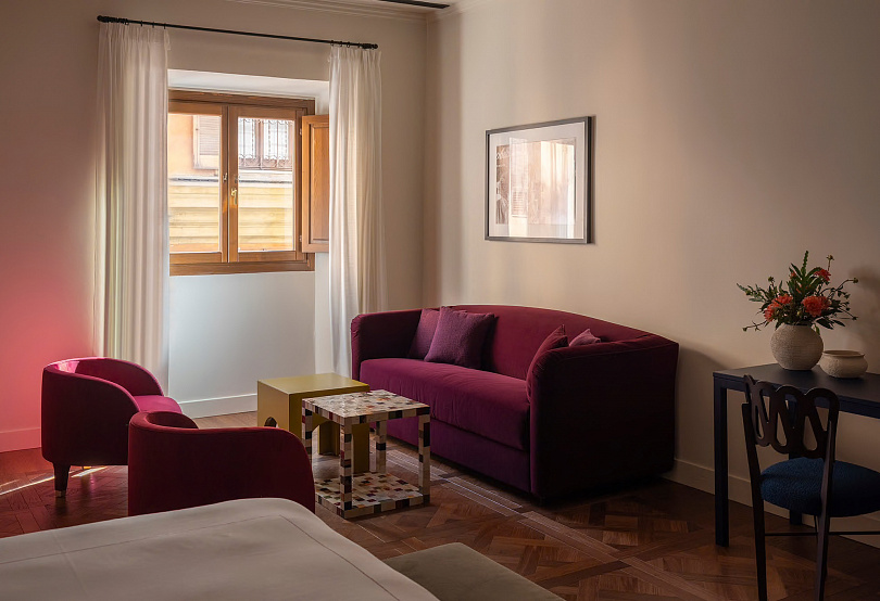 Чтобы выделиться в таком городе, как Рим, многие владельцы отелей приглашают для работы лучших мастеров и самых изысканных дизайнеров. Семья Федеричи пошла дальше, поручив дизайн общественных пространств отеля голливудскому режиссеру Луке Гуаданьино, за плечами у которого не только внушительный список фильмов, но и собственная дизайн-студия, работающая с частными клиентами и международными компаниями (Гуаданьино спроектировал бутик Redemption в нью-йоркском Сохо).