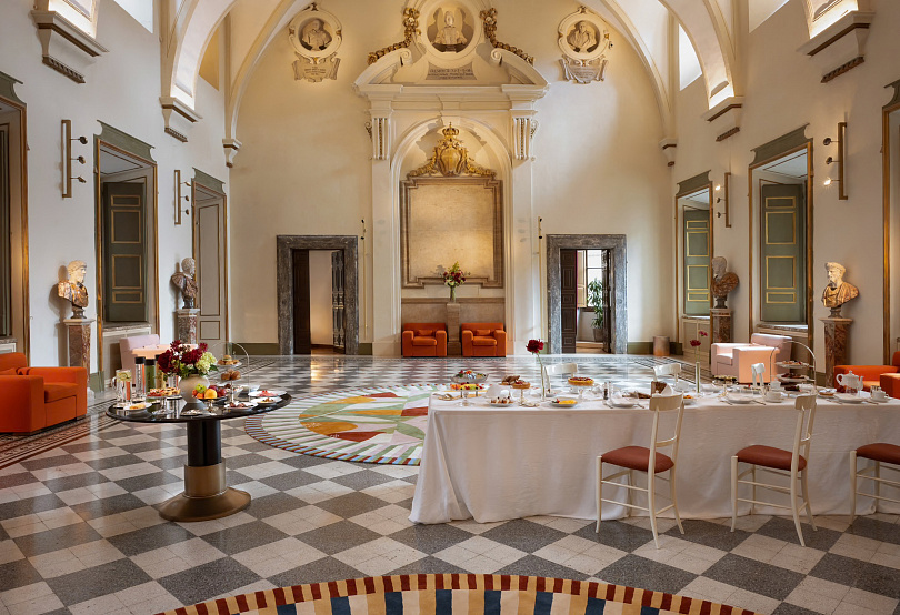 Палаццо, в котором расположился отель, построили в XVI веке для богатого папского секретаря, а в 1617 году открыли здесь одно из старейших учебных заведений в городе, где бедные дети и сироты получали образование при поддержке церкви и городской знати. После закрытия школы в 1999 году здание пустовало почти четверть века, пока его не купила семья римских промышленников. А дальше началось гениальное.