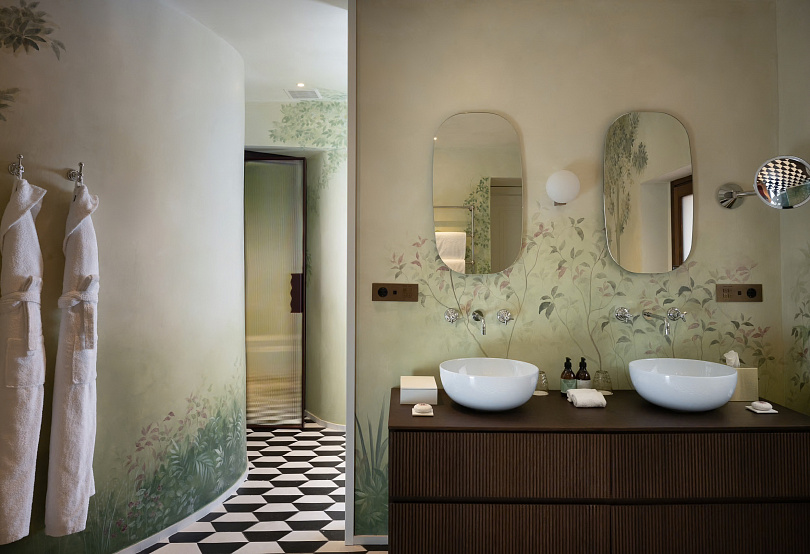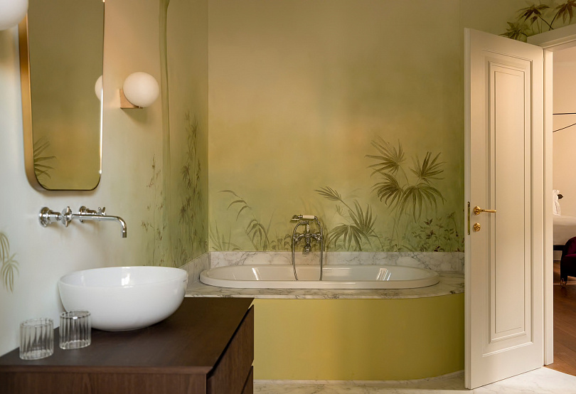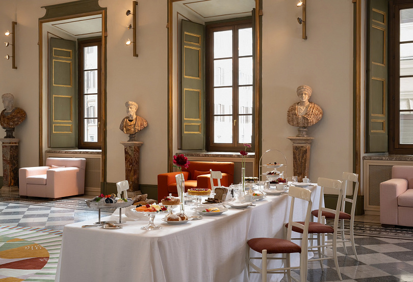 Результат — один из самых кинематографичных отелей в одном из самых кинематографичных городов мира, каждый номер в котором воплощает мечты о собственной квартире в Риме со стильной мебелью, мягким светом и теплой цветовой палитрой. В ресторанах — французские блюда с римским колоритом, аперитив можно заказать под пальмами во внутреннем дворике, а коктейли — в баре под сводами, украшенными 400-летними фресками и сияющими золотом. И зрелище, и сцена.