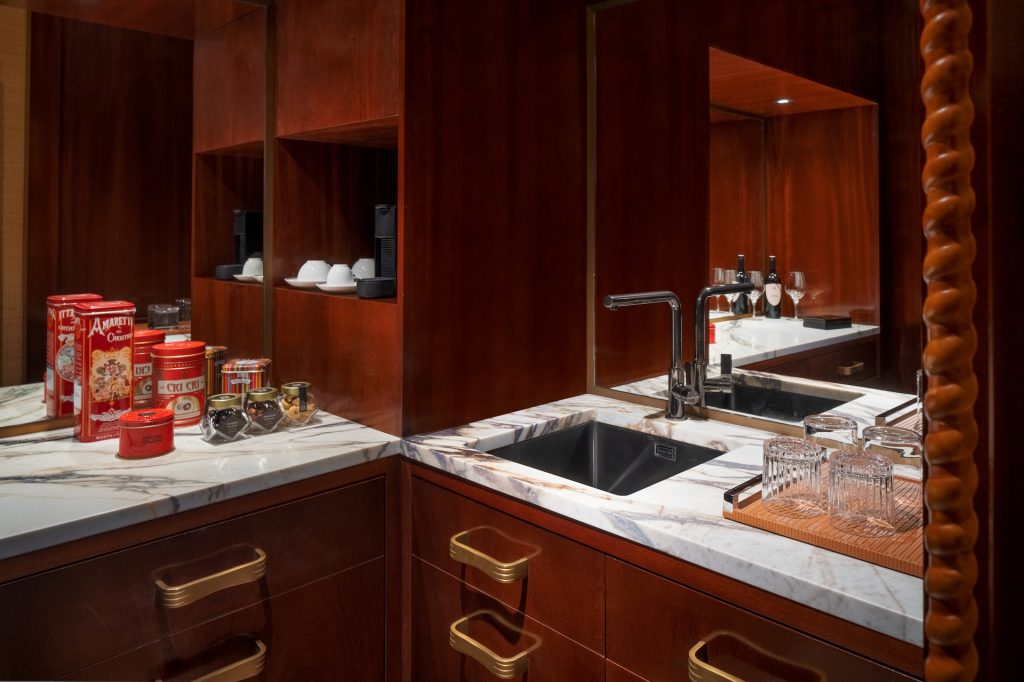 В номерах — кинематографическое освещение, работы флорентийских мастеров, каррарский мрамор и меню из семи типов подушек. Команда работает слаженно и энергично, демонстрируя чудеса бронирования и поиска нужных билетов. Рестораны делают ставку на новые имена, приглашая молодых поваров, прошедших суровую школу Алена Дюкасса и Гуальтьеро Маркези. В отеле открылся и первый в Италии Beefbar — Риккардо Джирауди наконец вернулся на родину, покорив остальной мир.
