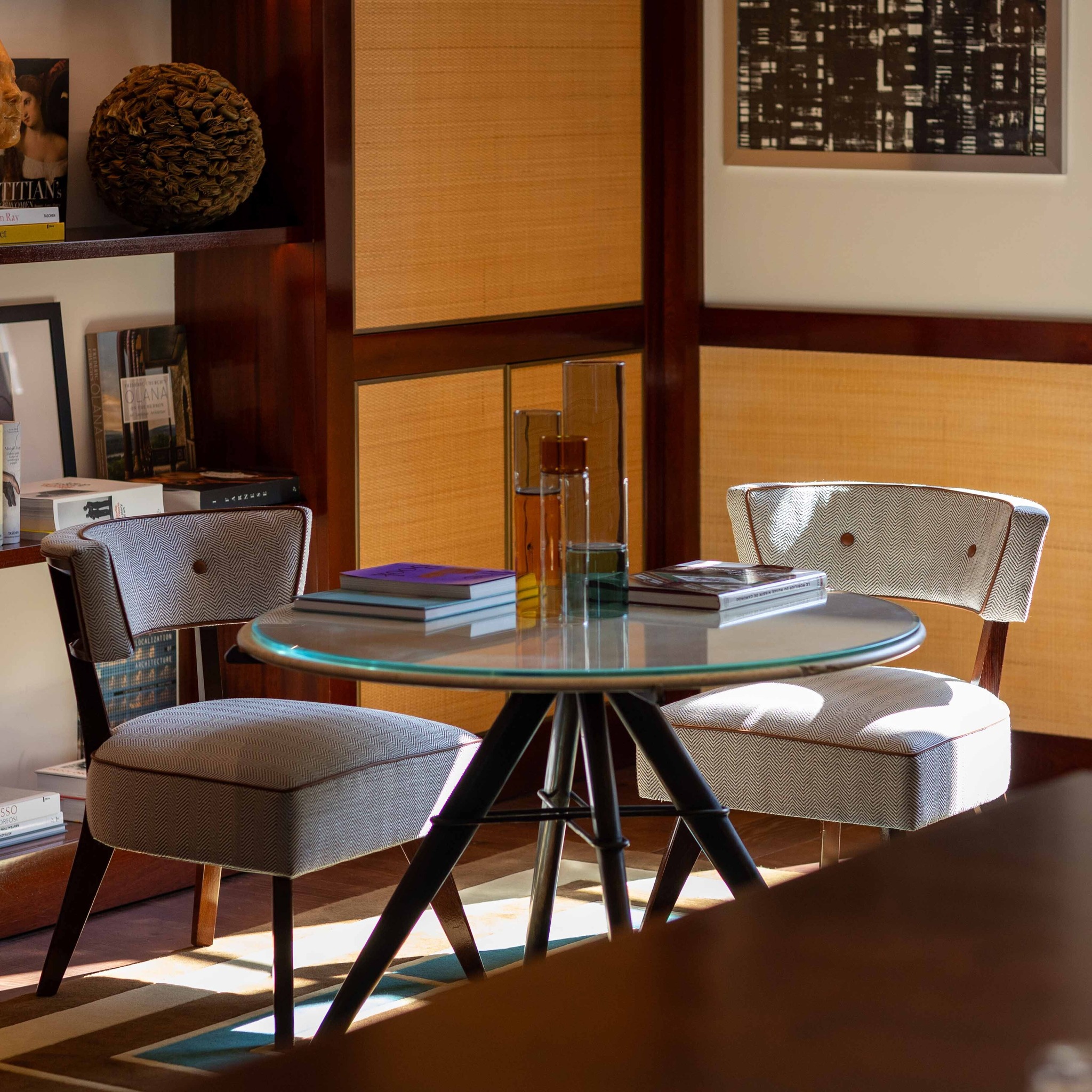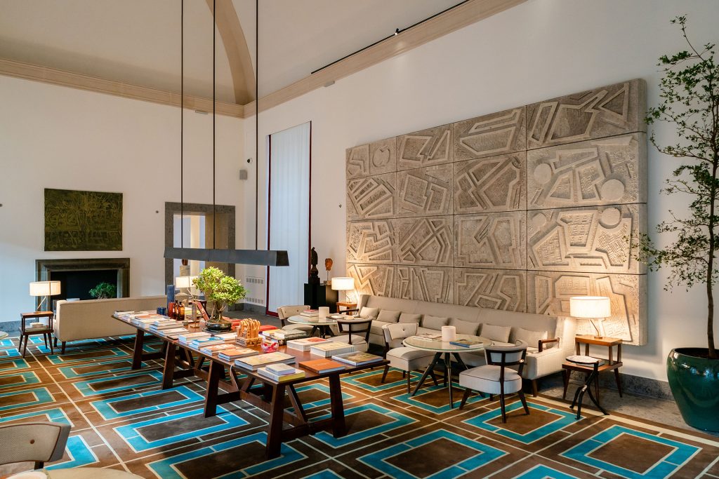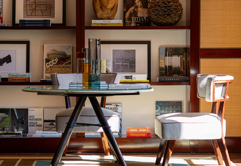 Главная дань прошлому — в библиотеке, где собрана внушительная коллекция книг о миланском искусстве и дизайне. Там же вы найдете и обувные конструкции от Сальваторе Феррагамо — мода и архитектура переплетены сильнее, чем может показаться.