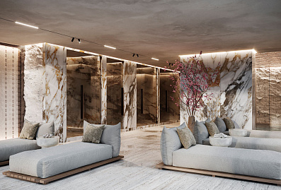 На первом уровне комплекса расположена Plaza — галерея с ресторанами, кофейнями и сервисами, оформленная в том же сдержанном ключе, что и сам отель. Здесь несколько ресторанов высокой кухни — ливанский, итальянский и южно-французский, кофейни, барбершоп, салон красоты, пекарня и супермаркет. Пространство открыто как для гостей, так и для горожан — роскошь, ставшая частью городской жизни.
