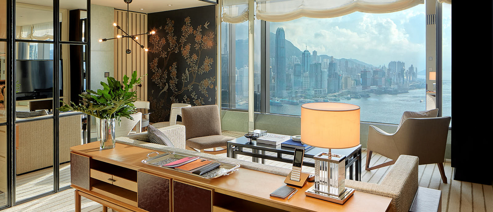 Номер с двумя спальнями и панорамным видом на гавань и горы. Гостиная, столовая и полностью оборудованная кухня. К каждой спальне примыкают гардеробная и ванная комнаты. Проживание в номере включает в себя услуги дворецкого и дает доступ в Manor Club.