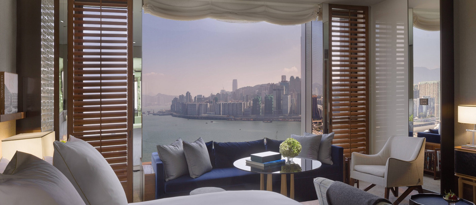Номер с двумя спальнями и видом на гавань. Кровати king-size в обеих спальнях. Две ванные комнаты, к каждой из которых примыкает гардеробная. Гостиная, гостевой туалет. Проживание в номере включает в себя услуги дворецкого и дает доступ в Manor Club.
