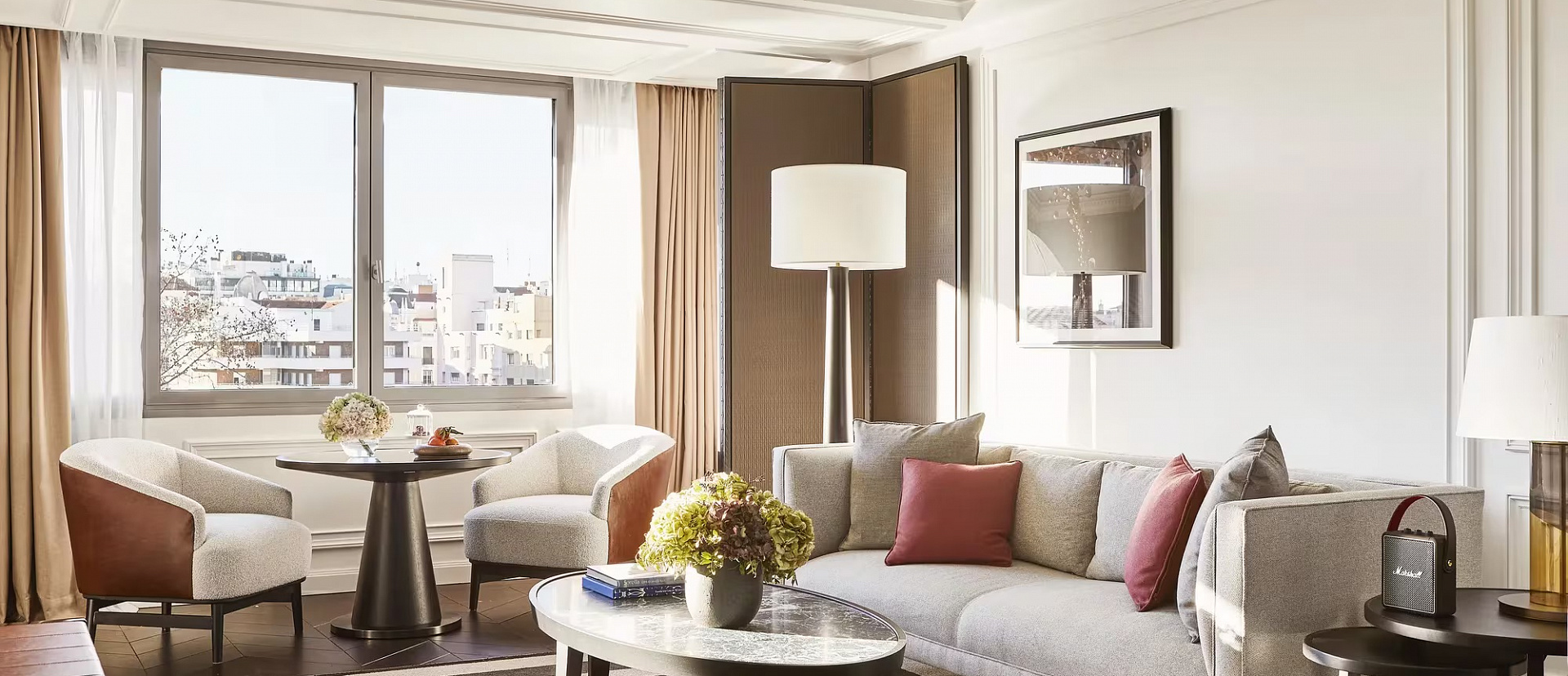 Просторный номер с двумя спальнями, отдельной гостиной и полностью оборудованной кухней. К каждой спальне примыкает ванная комната и гардеробная. Гостям предоставляется гибридный автомобиль и скутер для передвижения по городу.