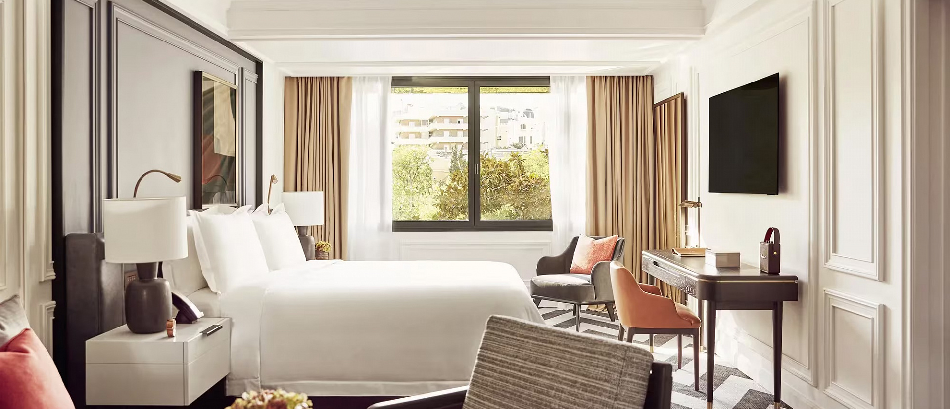 Номер с тремя спальнями на третьем этаже с видом на город. Элегантная гостиная для отдыха, деловых и дружеских встреч, две главные спальни, каждая с кроватью king-size. Третья комната адаптируется под ваши нужды: одна или две кровати. Три полные ванные комнаты и один гостевой туалет.