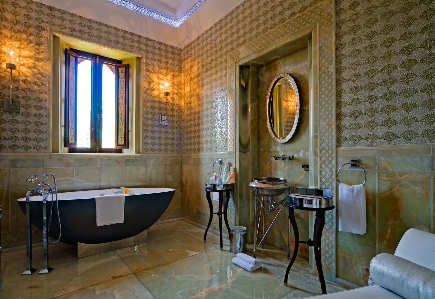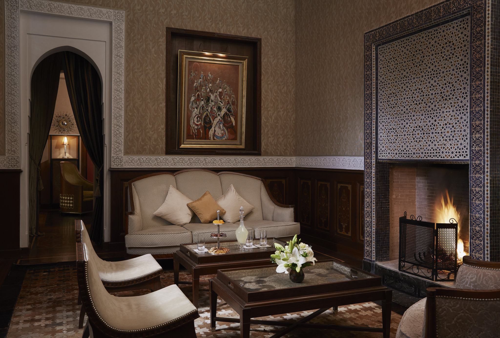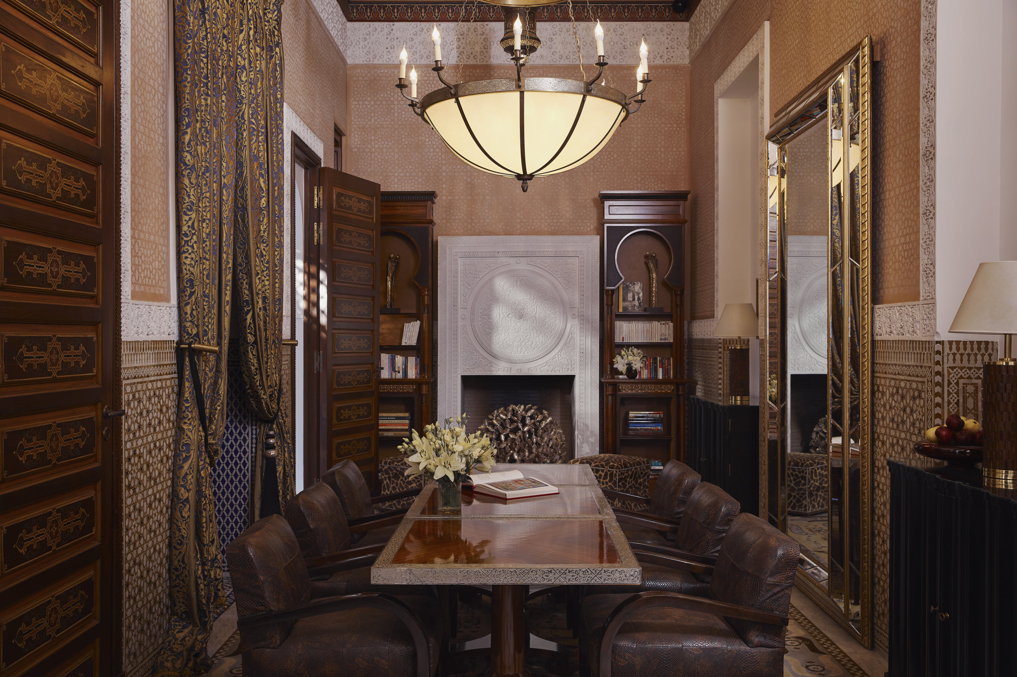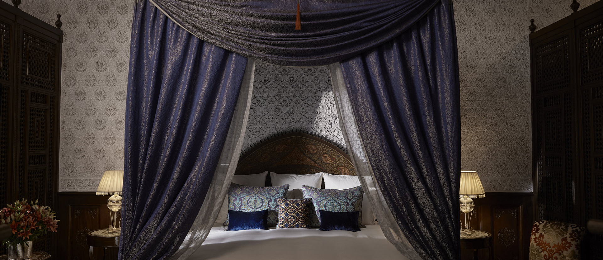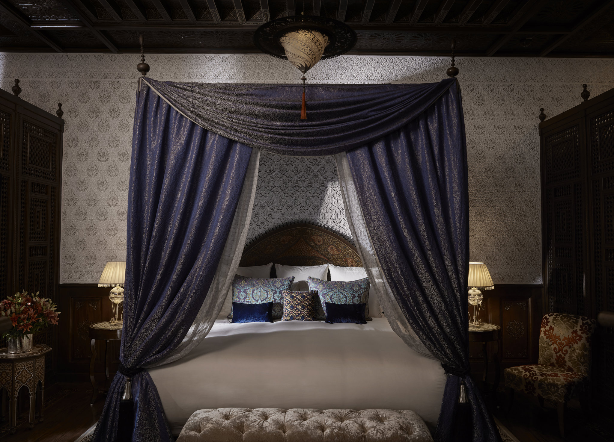 Риад с тремя спальнями, бассейном и хаммамом. Частный лифт, полностью оборудованная кухня и отдельная столовая. К каждой спальне примыкают гардеробная и ванна комнаты. С террасы на крыше открывается вид на сады и Атласские горы.