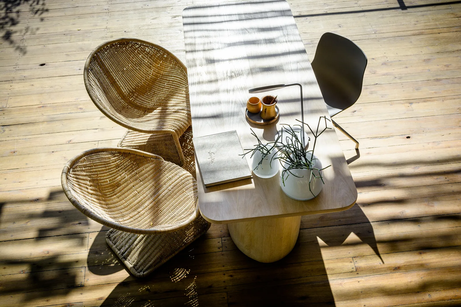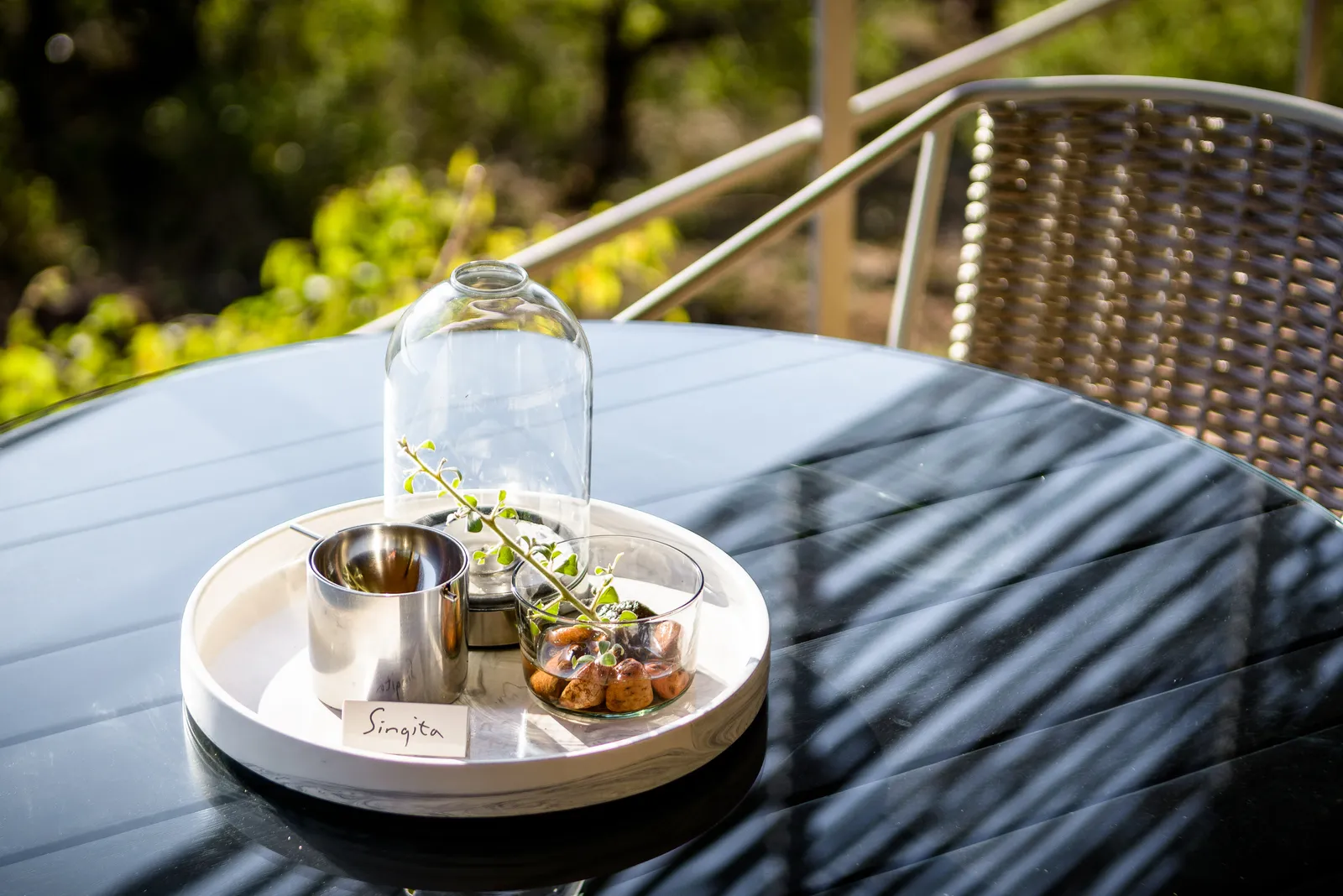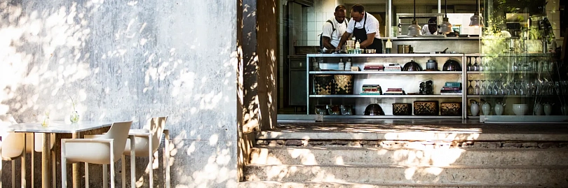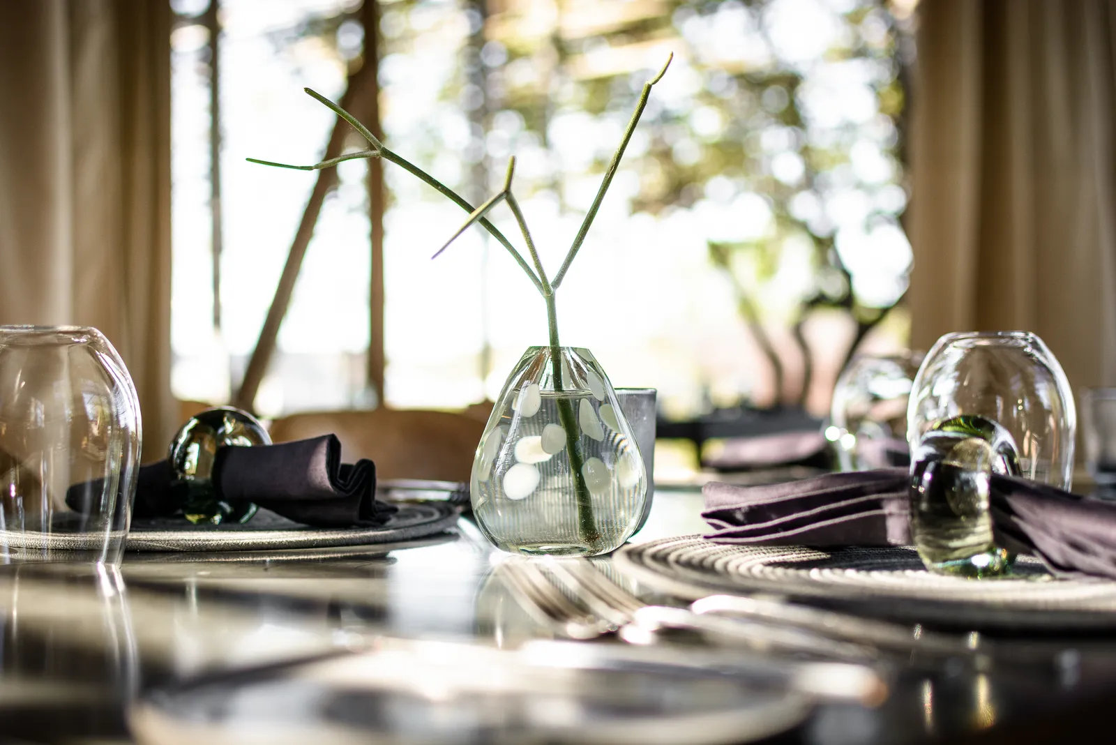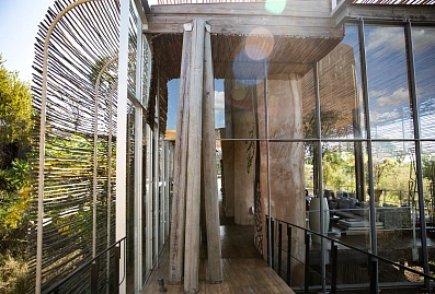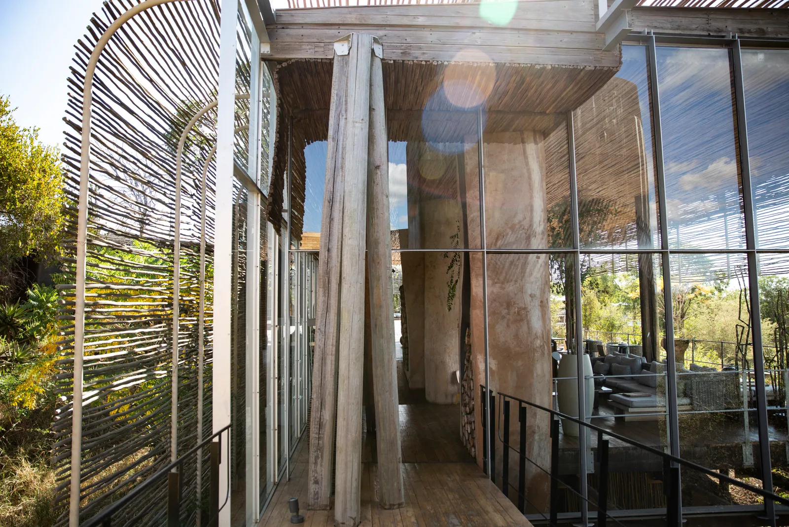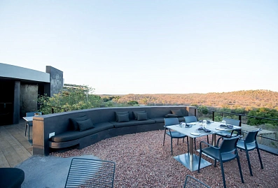 Пятнадцать сьютов открытой планировки и две виллы встроены в скальные выступы и выглядят так, словно подвешены над долиной и рекой. Ландшафт здесь — не привычная саванна, а холмы и горы, покрытые похожими на кактусы деревьями. Ощущение, что вы на дикой природе, приходит мгновенно — спасибо панорамным окнам.