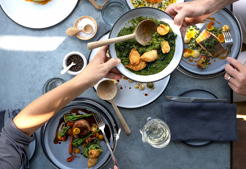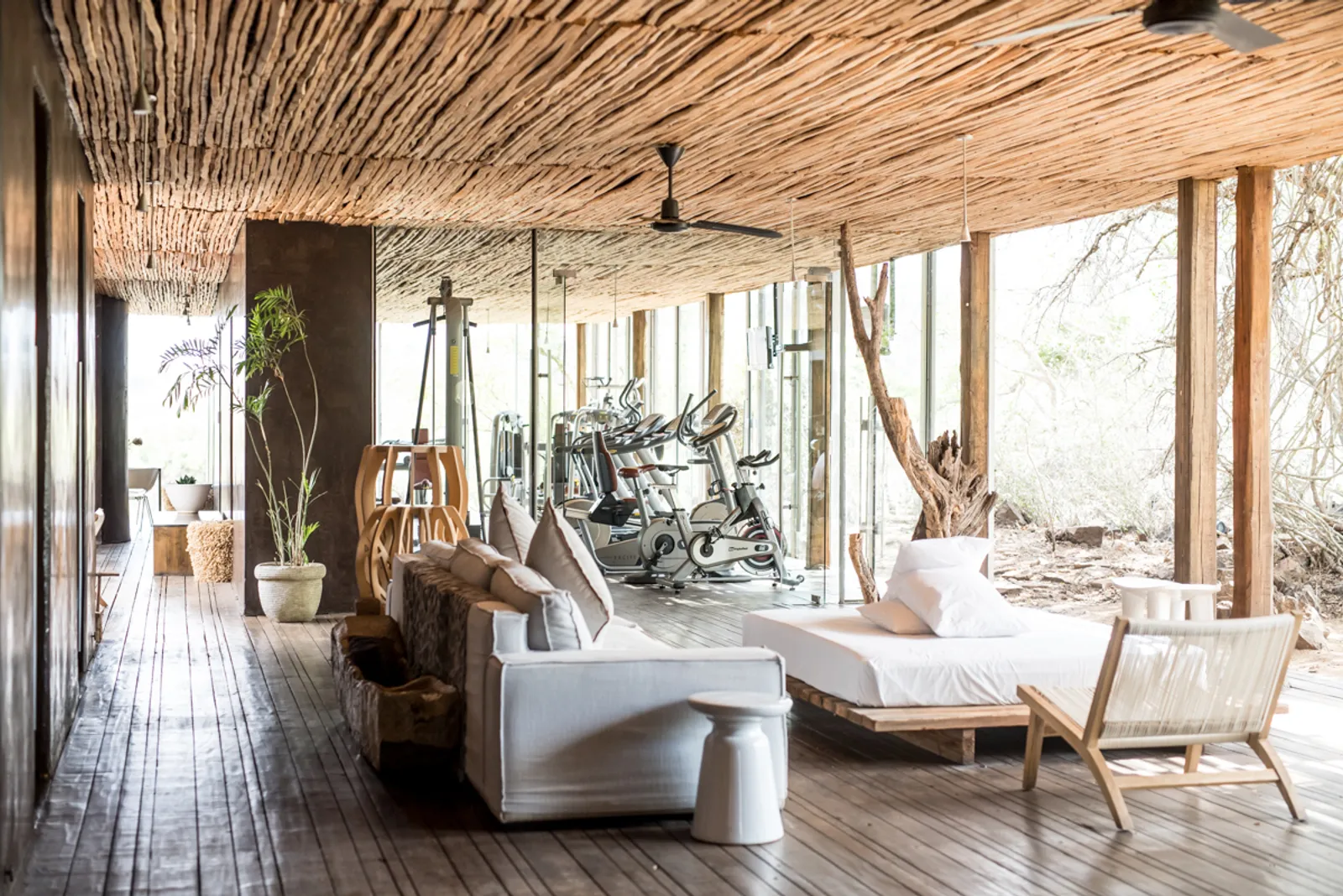 После знакомства с «большой пятеркой» к вашим услугам будет тренажерный зал, spa-центр, винный погреб, бассейн и традиционная бома — площадка под открытым небом, на которой проходят ужины. На деревянной террасе каждого номера есть обеденный стол и диван, где можно остаться на ночь — звезды в этой части неба светят ярко, как нигде.