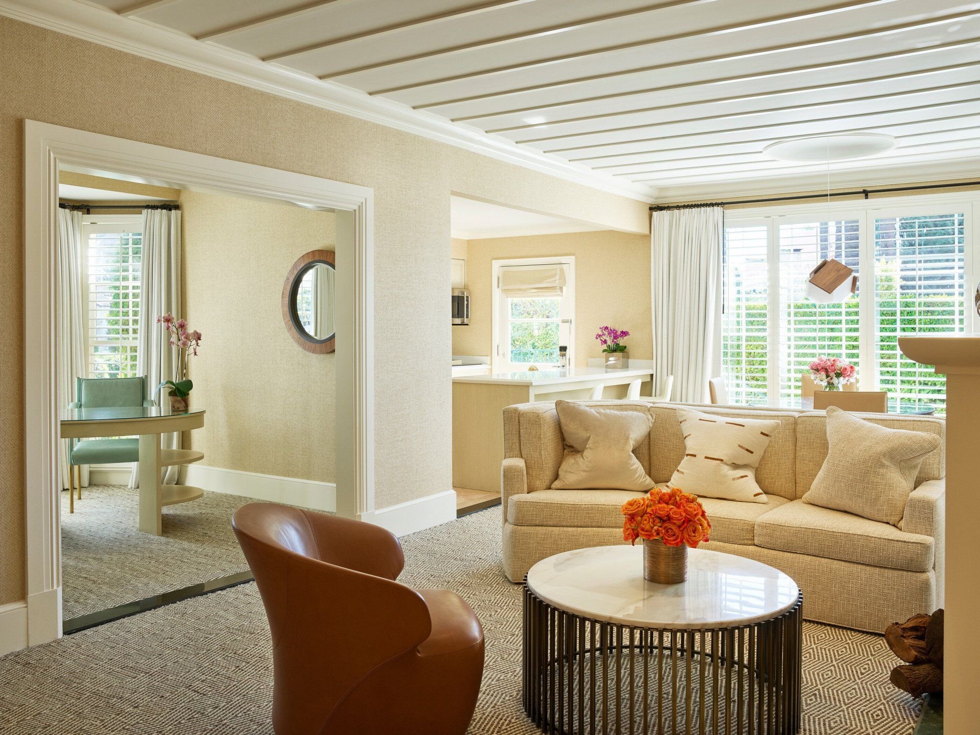 Здесь часто останавливался Чарли Чаплин, и дизайнеры отеля отразили это в интерьере, добавив номеру причудливых узоров и разнообразных текстур. На улице есть меблированная лаунж зона, внутри — кухня, спальня и отдельная гостиная с камином. Кровать в спальне king-size. Можно объединить с соседним номером.