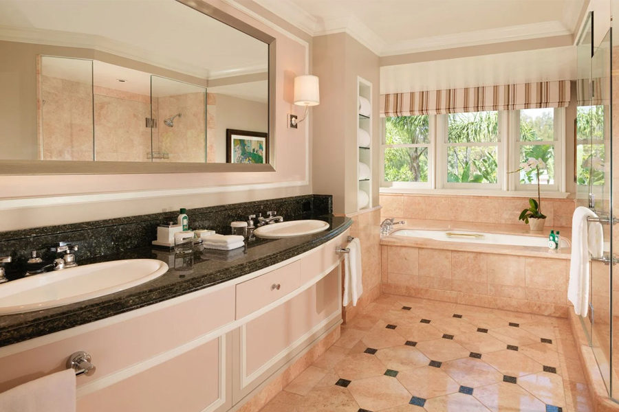 Просторный номер с гостиной зоной и видом на сады. Кровать king-size. Ванна и душевая кабина в ванной комнате.