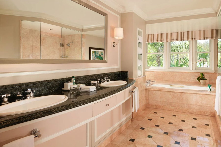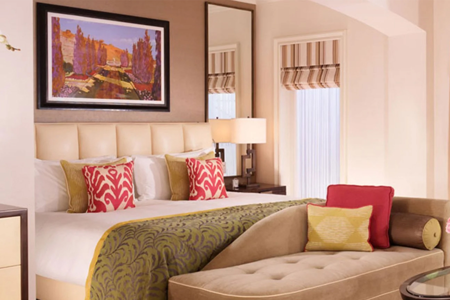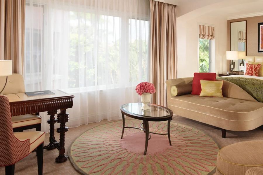 Просторный номер с балконом и видом на сады. Гостиная зона, кровать king-size. Ванна и душевая кабина в ванной комнате.