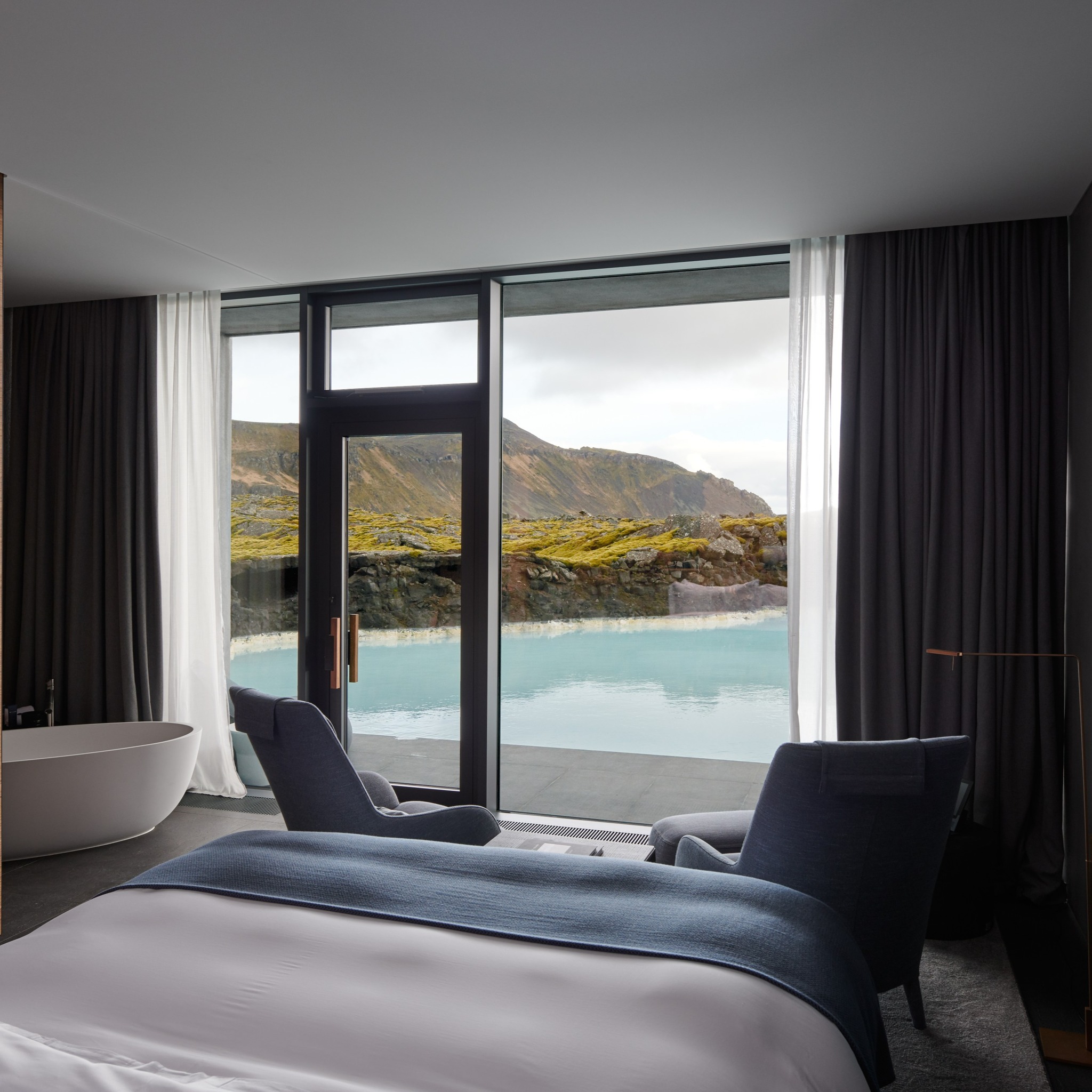Ключевое преимущество озвучено в названии: у отеля есть собственная лагуна в одной из главных достопримечательностей Исландии. Можно не только избежать очередей, но и забронировать сьют с собственной, приватной купелью. В сочетании с окнами от пола до потолка, открывающими панорамы вулканических скал и лавовых полей, это делает парящий над мятно-голубыми водами лагуны отель очевидным выбором.