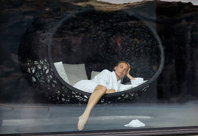 Подземное spa дополняет опыт и максимально использует природные ресурсы: соляные скрабы, маски с микроводорослями и массажи, некоторые из которые проводят прямо в воде, после пары дней проживания кажутся не просто приятным дополнением, а настоящей необходимостью. Неудивительно, что самая редко посещаемая комната в отеле — тренажерный зал.