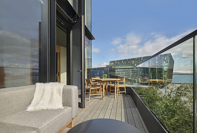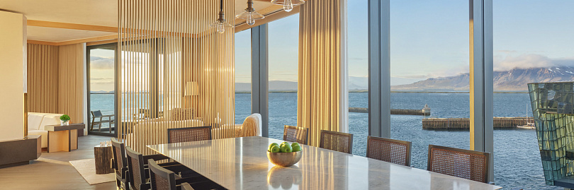 Первый пятизвездочный отель страны расположился по соседству с самой дорогой недвижимостью столицы, там, где город встречается с морем. Расположение безупречно: до концертного зала Harpa подать рукой, оживленная марина — всего в паре шагов. Из окон видно и гавань, и горы, и море, а до стратегически важных мест Рейкьявика отсюда можно дойти пешком.