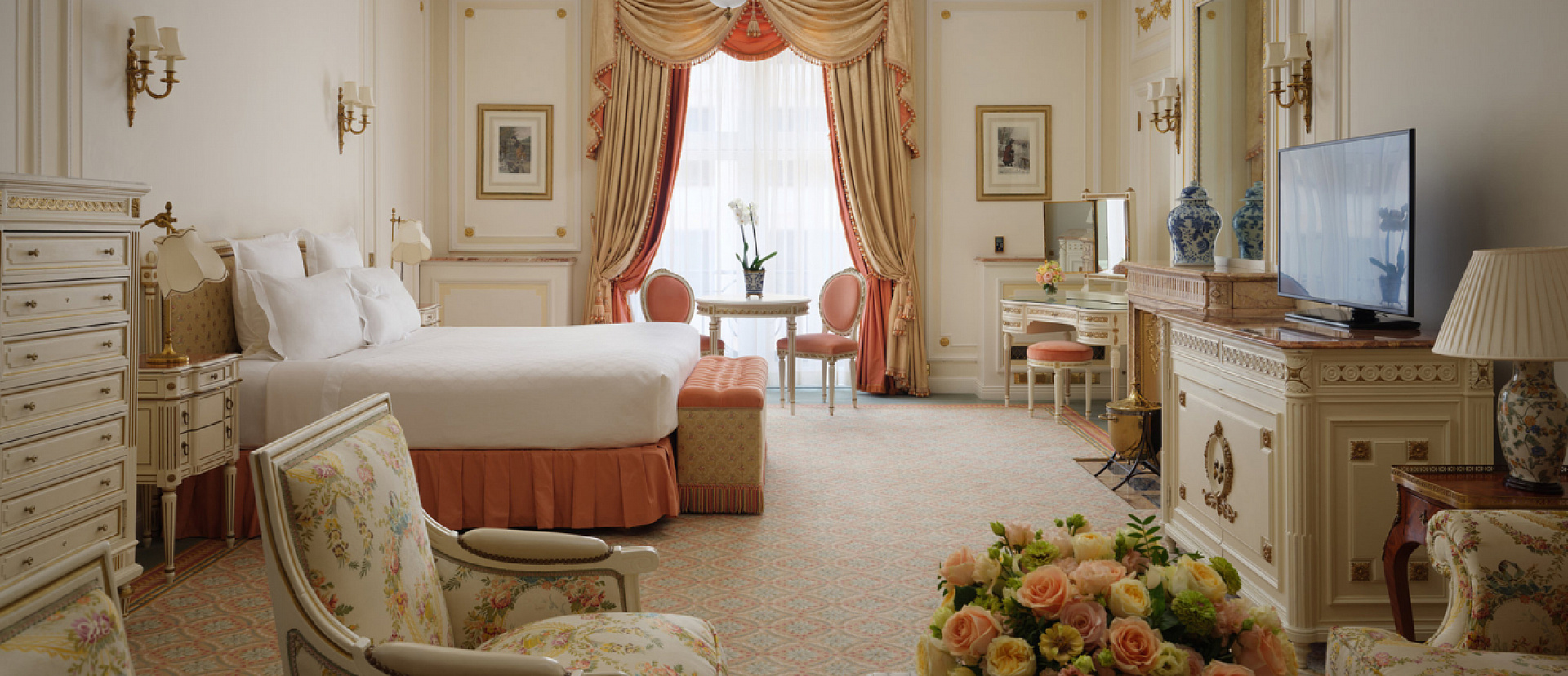 Просторный люкс с гостиной и обеденной зоной и видами на улицу Пикадилли. Большие диваны и камин. Возможно объединение с соседними номерами.