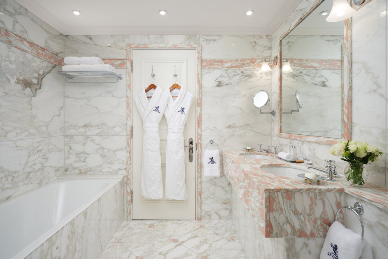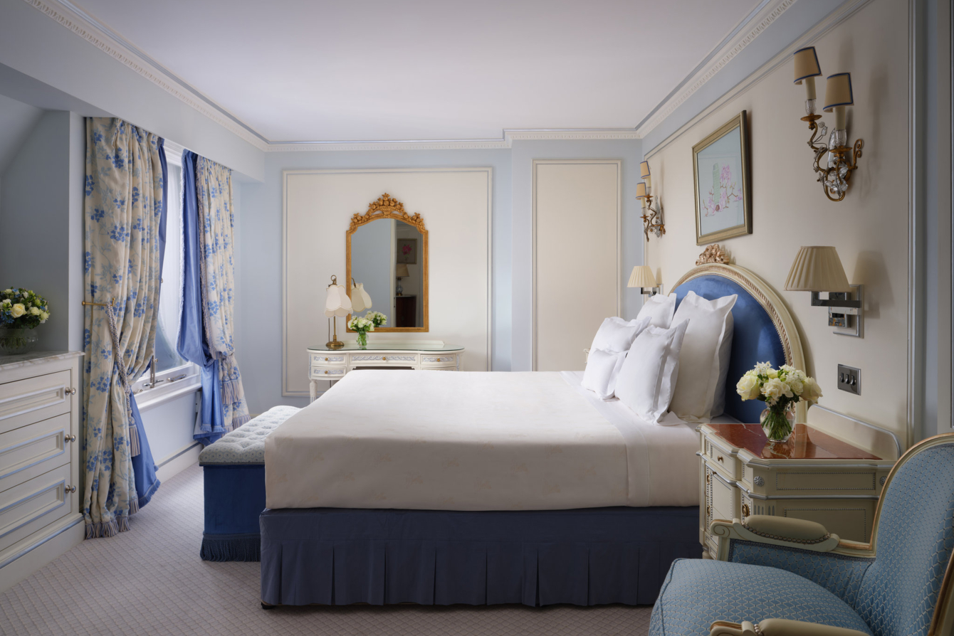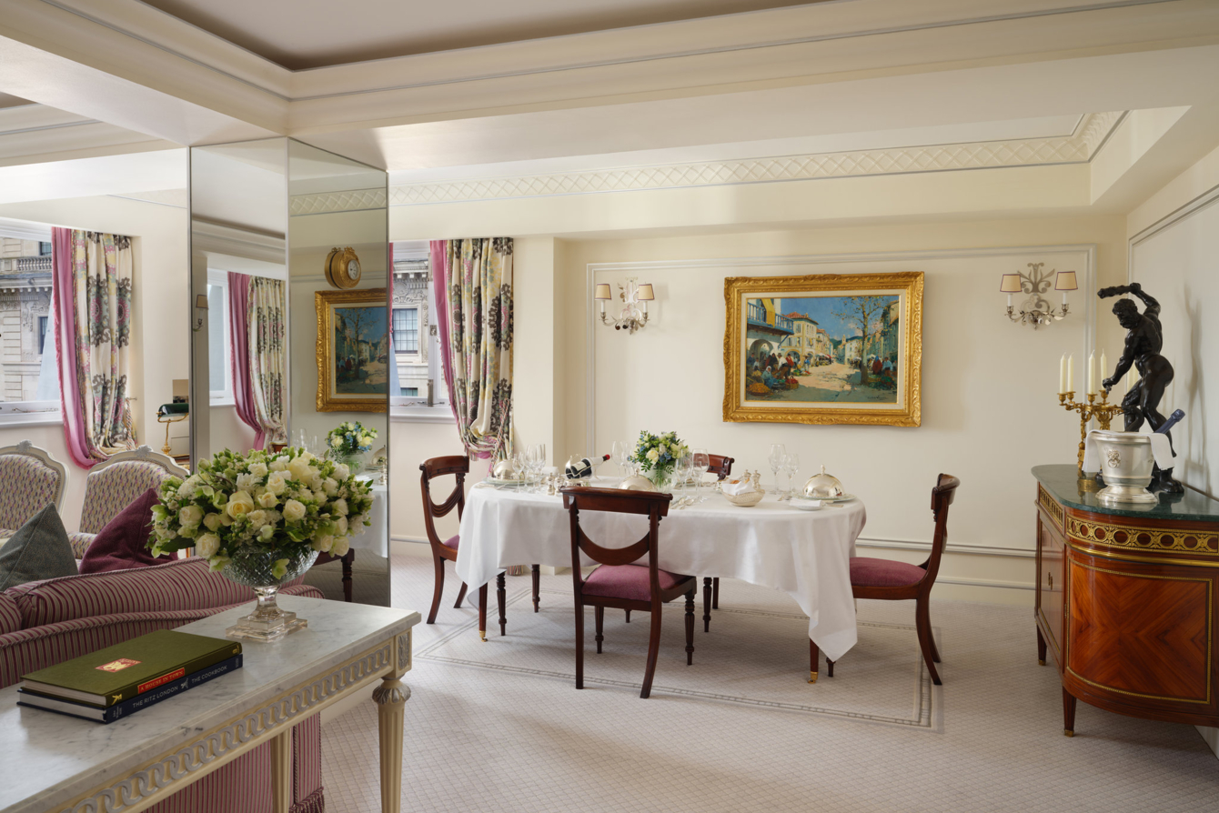 Люкс с двумя спальнями и собственной отдельной кухней. Ванная комната с двумя раковинами и ванной в каждой спальне. Из спальни открывается вид на Грин-парк, из просторной гостиной — на Пикадилли.