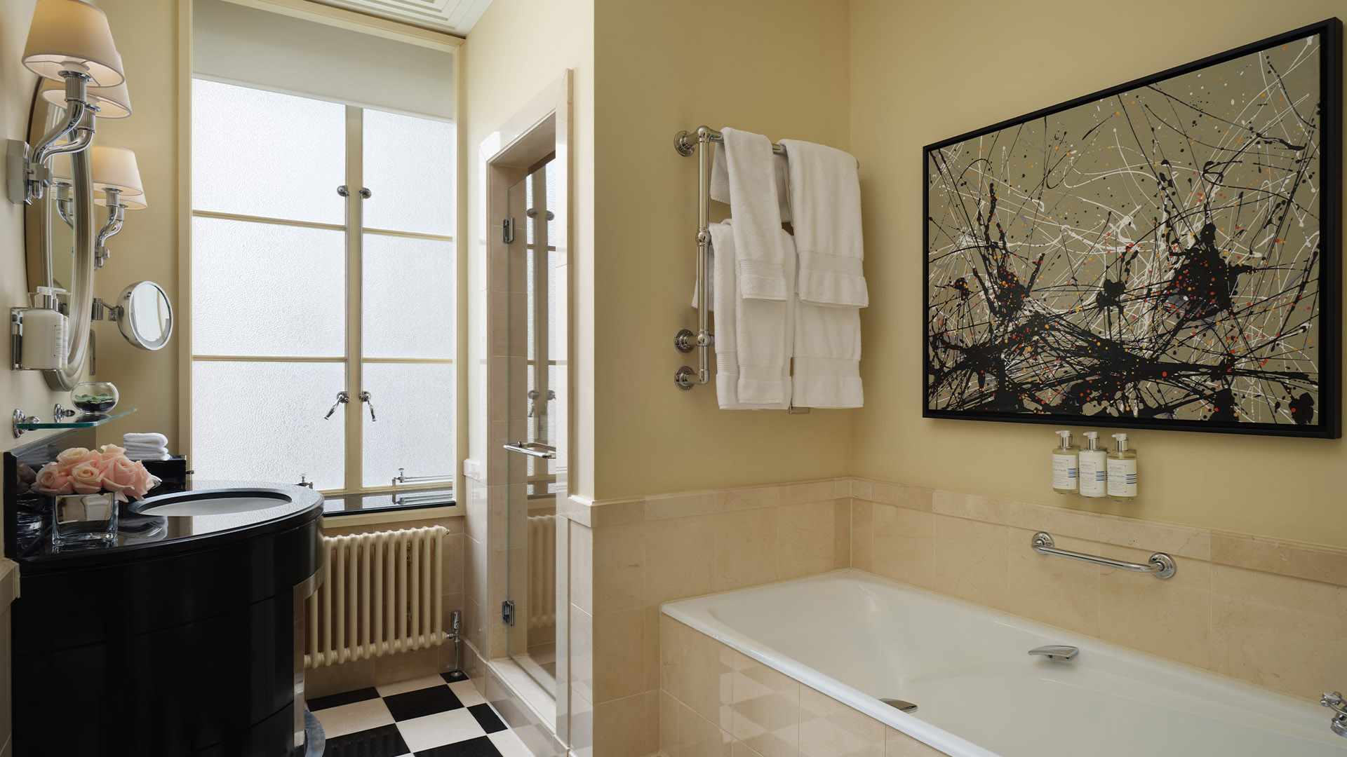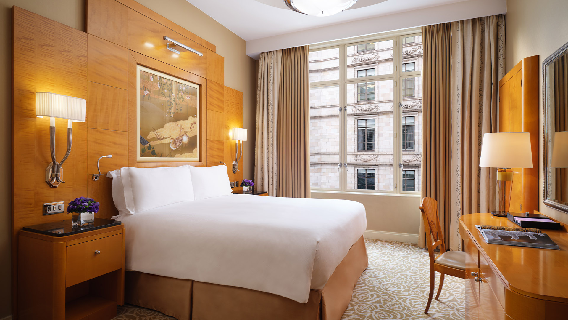 Номер с видом на город или тихий внутренний двор отеля. Кровать king-size. Ванна и душевая кабина в ванной комнате. Возможно объединение с соседними номерами.