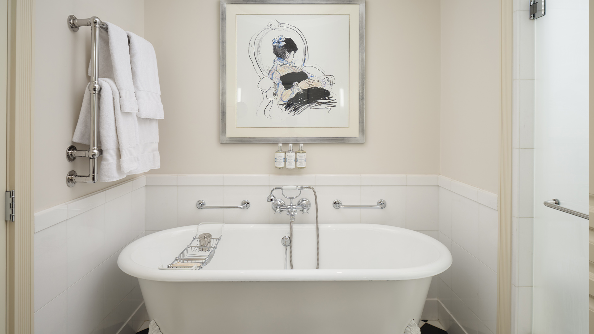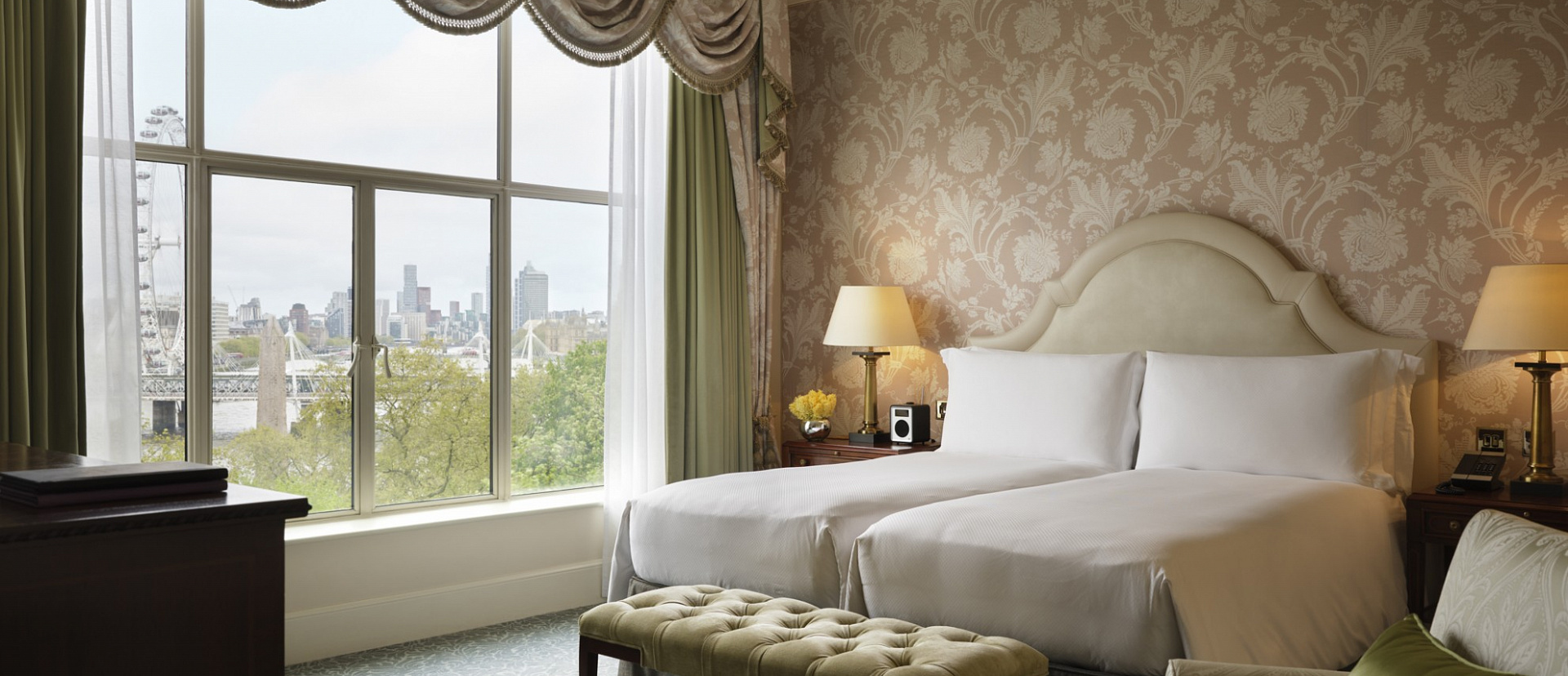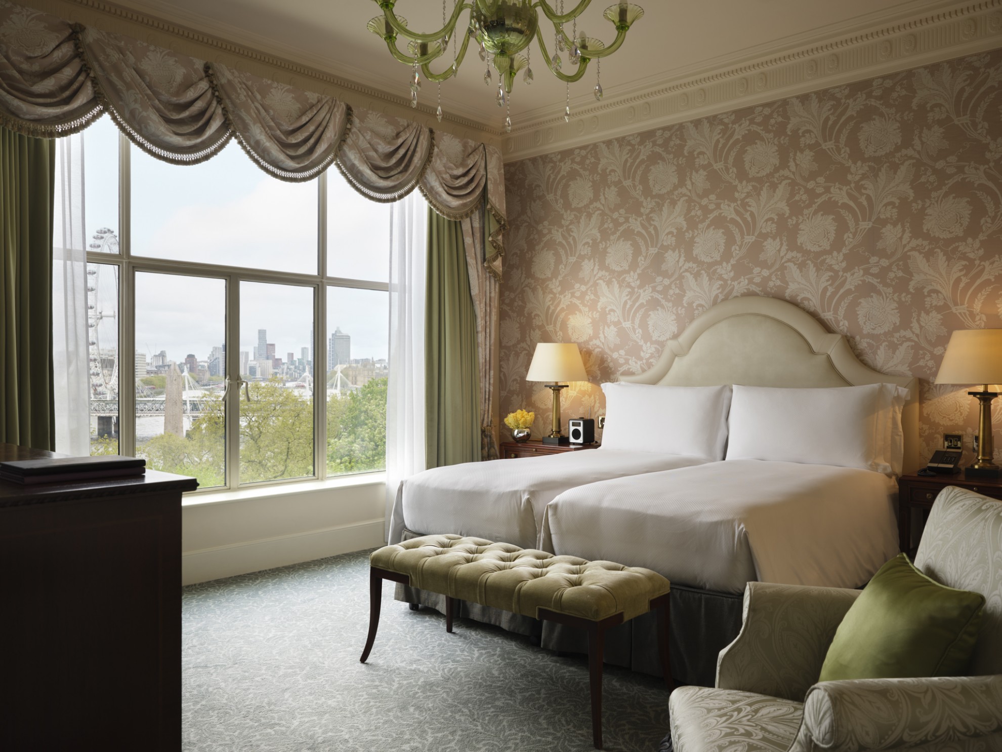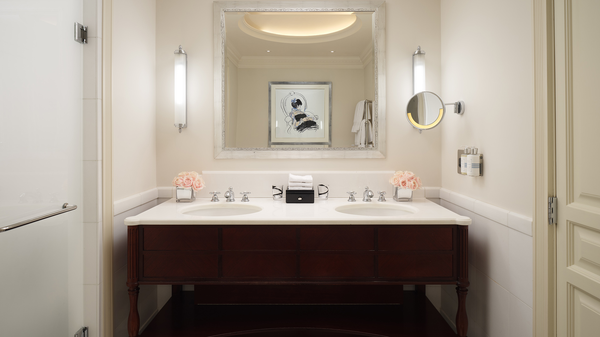 Номер с видом на реку. Кровать размера king-size, просторная ванная комната с двумя раковинами, ванной и душевой кабиной. Возможно объединение с соседними номерами.
