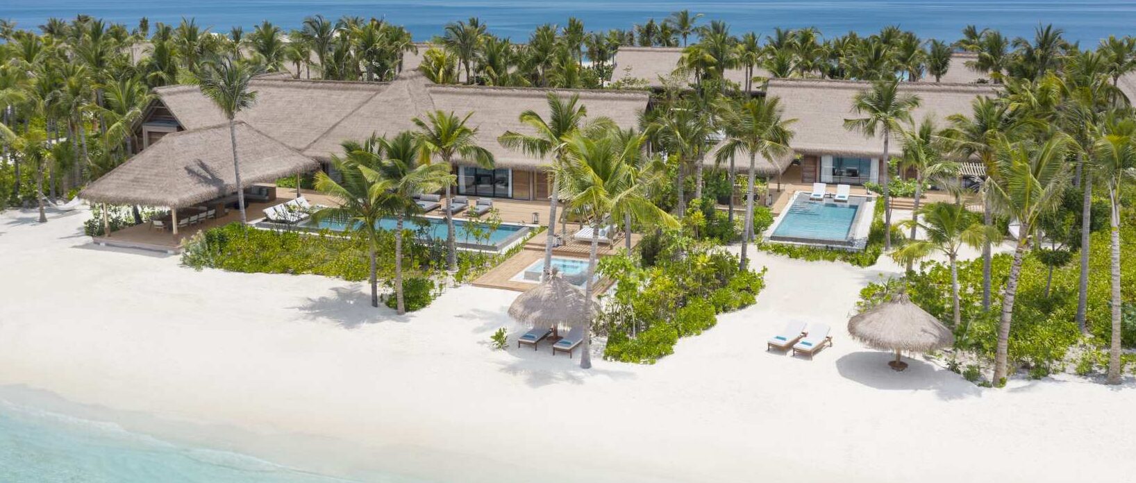 Просторная вилла на пляже с тремя спальнями и отдельной гостиной зоной. Тропический сад, терраса и два инфинити-бассейна. Кровати king-size в двух спальнях и две отдельные queen-size в третьей. Душевая кабина и ванна внутри виллы, тропический душ на открытом воздухе. Выход к пляжу с бассейном и джакузи. Разросшаяся растительность может закрывать вид на океан.