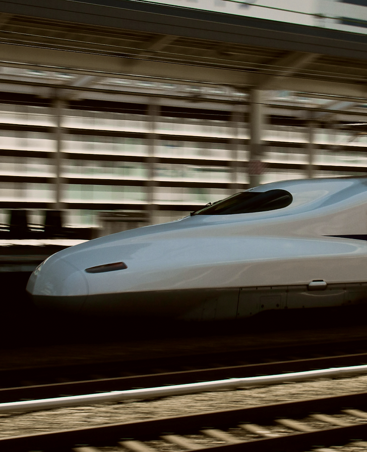 Скоростной синкансэн движется со скоростью 300 километров в час, но смена пейзажей за окном кажется неторопливой: темные крыши деревень сменяют рисовые поля, холмы постепенно исчезают в дымке, а города растворяются в зелени прежде, чем вы успеваете их заметить.