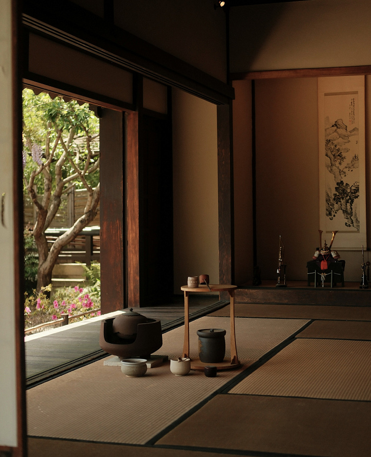 Вечером — частная чайная церемония в доме эпохи Эдо в Нэрима. Каменная дорожка приводит ко входу, который можно не заметить с первого взгляда. Внутри — сдержанный интерьер, где каждый предмет на своем месте. Ритуал точный, выверенный, как движение стрелки по циферблату. Но время здесь летит незаметно.