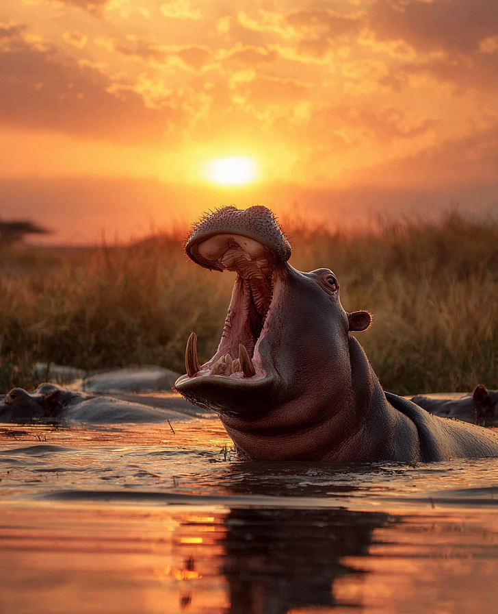 Главное развлечение этого дня — водное сафари. Представьте: лодки бесшумно скользят по глади озера, пока несколько семейств бегемотов вокруг ныряют, фыркают, занимаются своими делами и порой бросают на вас любопытные взгляды.