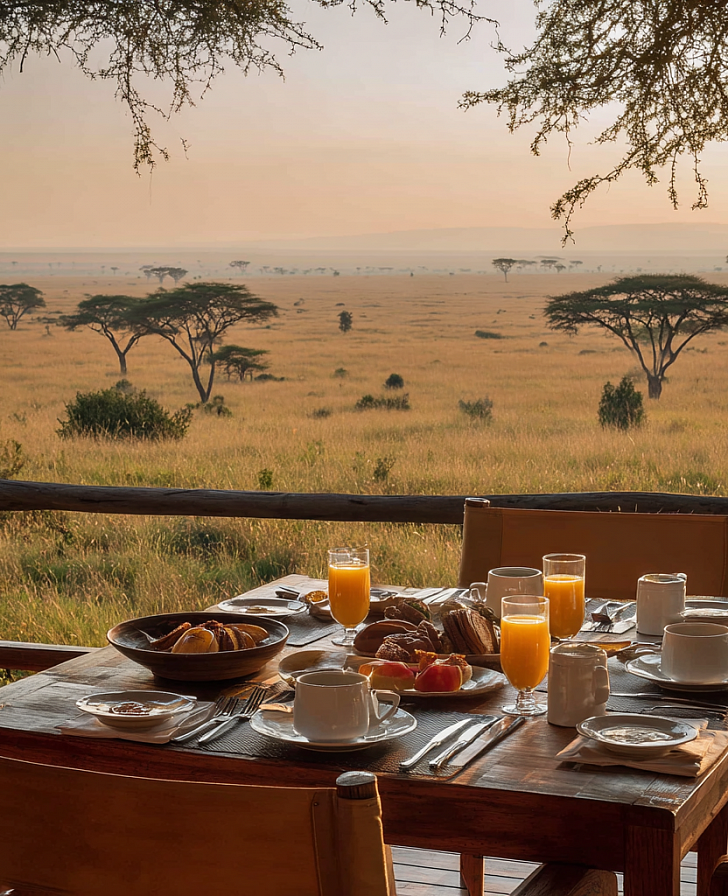 Добро пожаловать в сердце Африки, где жара раскаляет землю, а саванна шепчет на языке львов, слонов и жирафов. Последние уже ждут вас на завтрак, нетерпеливо заглядывая в окна столовой, и с радостью разделят французские тосты, пока вы пьете свежий местный кофе.
