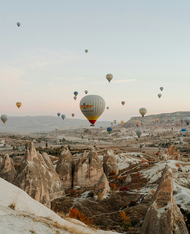 Полет на воздушном шаре. На рассвете, когда солнце только касается долины своими лучами, окрашивая скалы в розовый и золотой цвета, Каппадокия просыпается — и взмывает в небо. Сотни шаров поднимаются одновременно, создавая картину, которая кажется нереальной.