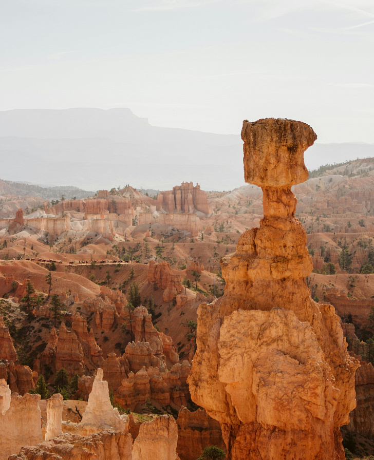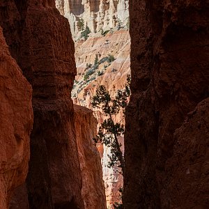Маршрут Navajo Loop Trail уведет вглубь каменного лабиринта, где узкие проходы открывают безмолвные каньоны, скалы смыкаются над головой, а солнце играет с тенями, превращая песчаник то в золото, то в медь. Одна из главных точек маршрута называется «Уолл-стрит»: гигантские колонны стоят так ровно и плотно, что напоминают небоскребы Нью-Йорка.