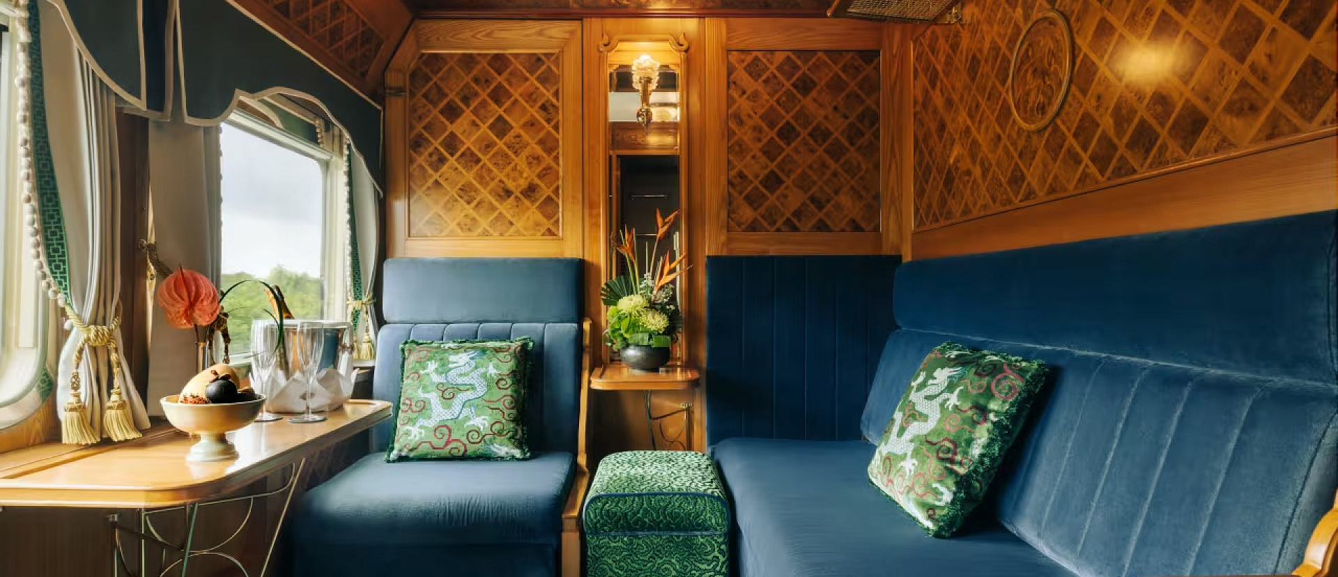 Днем эти купе — элегантная гостиная зона, а вечером пространство трансформируется в две односпальные кровати, стоящие рядом. В номере есть собственная ванная комната.