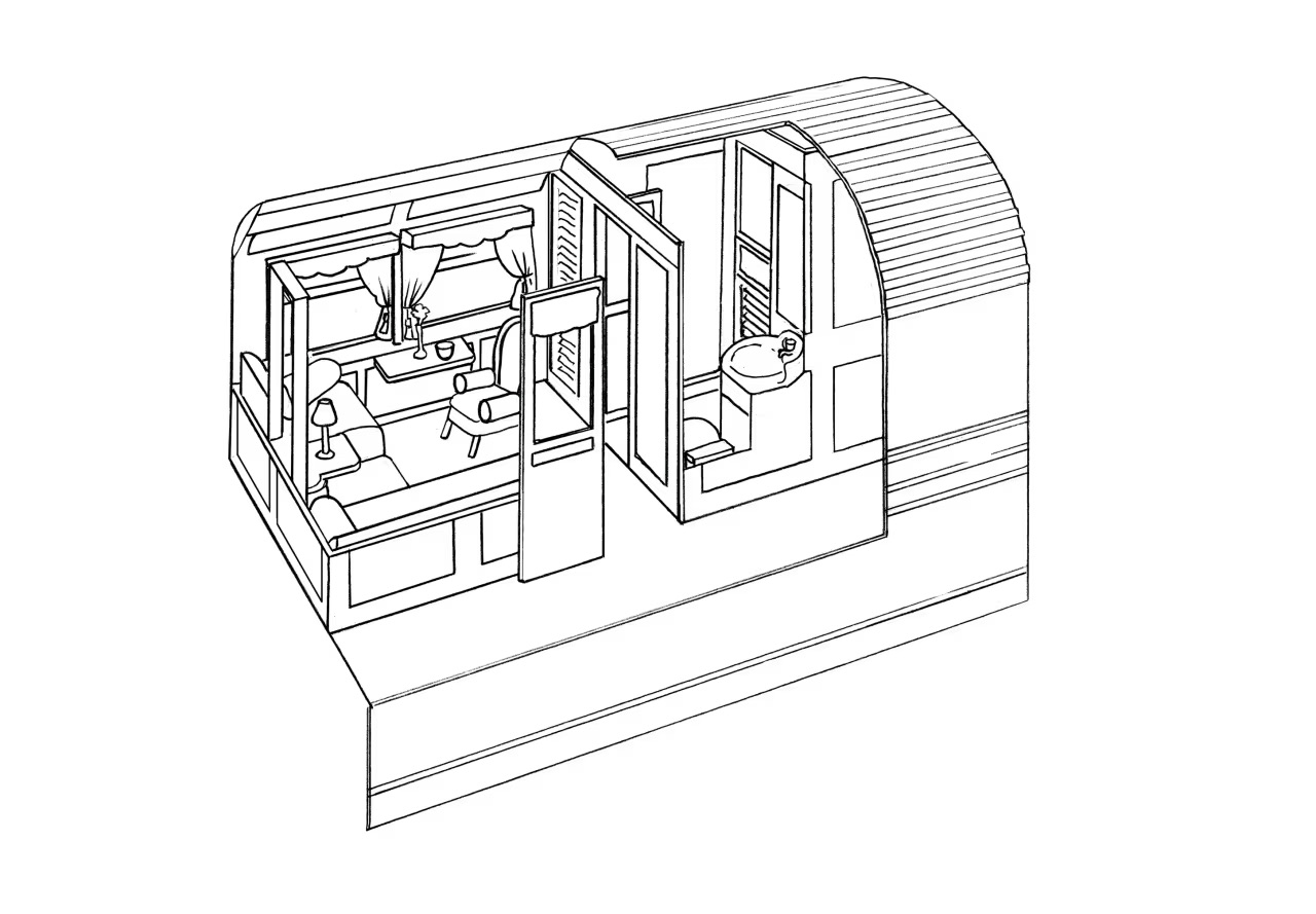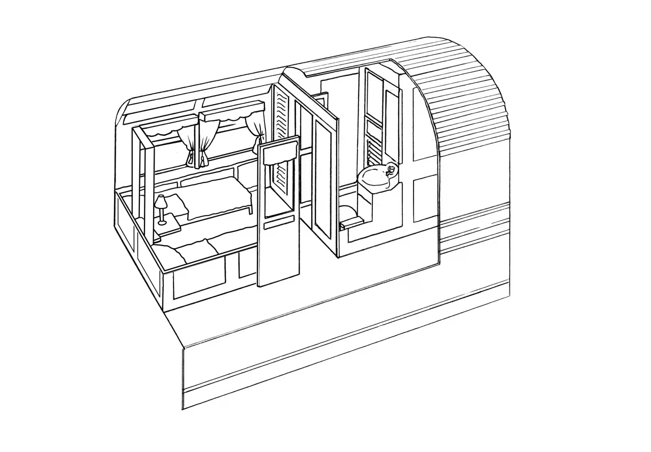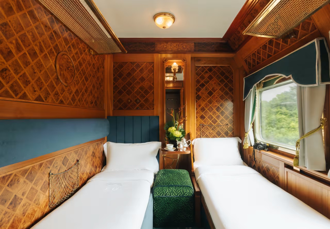Днем эти купе — элегантная гостиная зона, а вечером пространство трансформируется в две односпальные кровати, стоящие рядом. В номере есть собственная ванная комната.