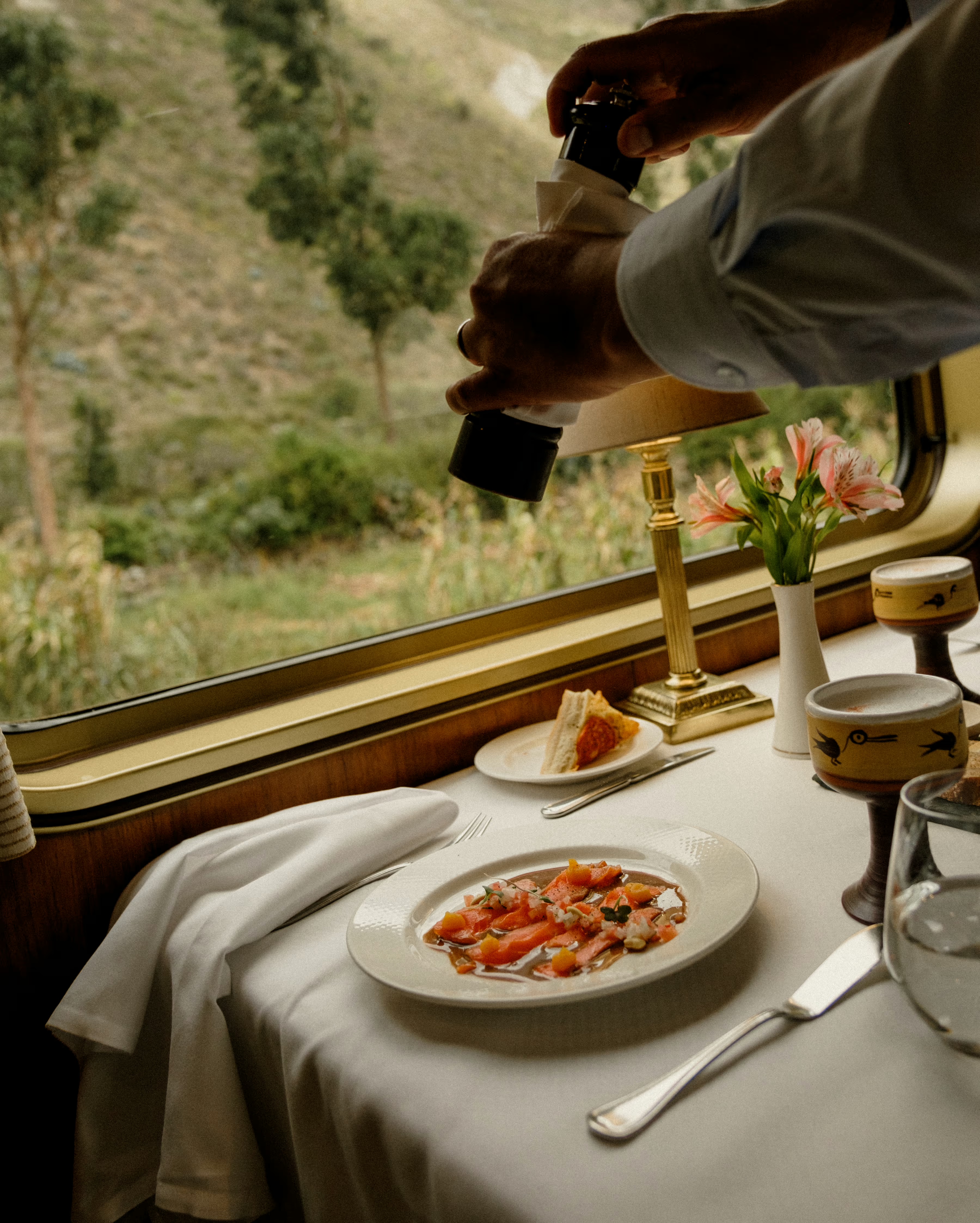 Поезд — прямой наследник традиции Orient Express. За отделку вагонов отвечала французская Compagnie Internationale des Wagons-Lits, создавшая интерьеры самого известного поезда в истории. Внутри — классика 1920-х, отсылающая ко времени жизни Бингема: лакированные панели из ценных пород дерева, инкрустации и латунная фурнитура. Европейский лоск дополнен перуанской душой благодаря ярким акцентам и природным мотивам.