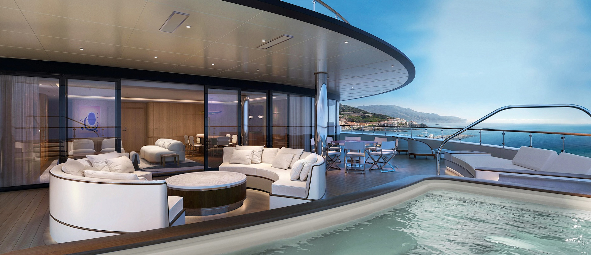 Номер с расширенной террасой, бассейном и лаунжем на открытом воздухе. Отдельная гостиная со столовой зоной, три спальни с кроватями king-size, четыре ванные комнаты.