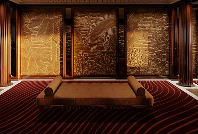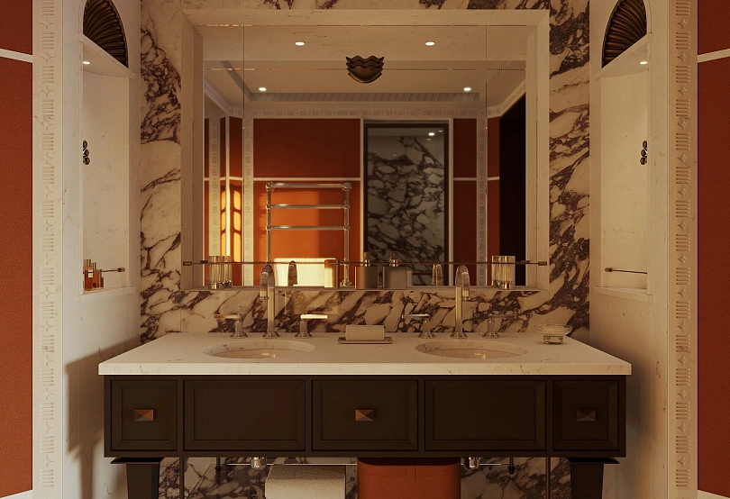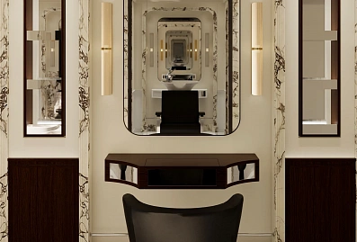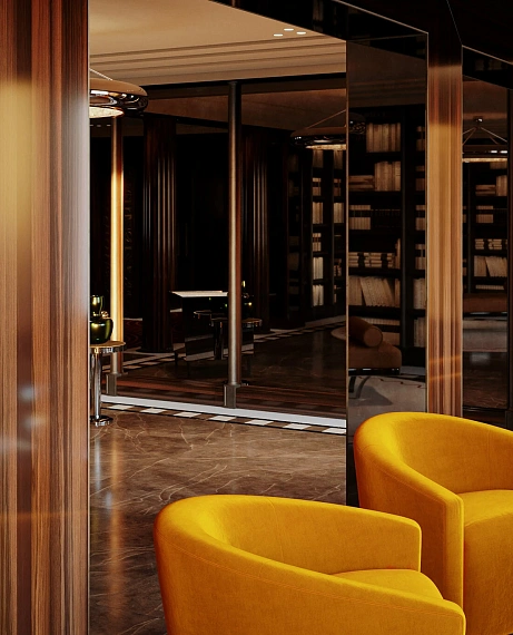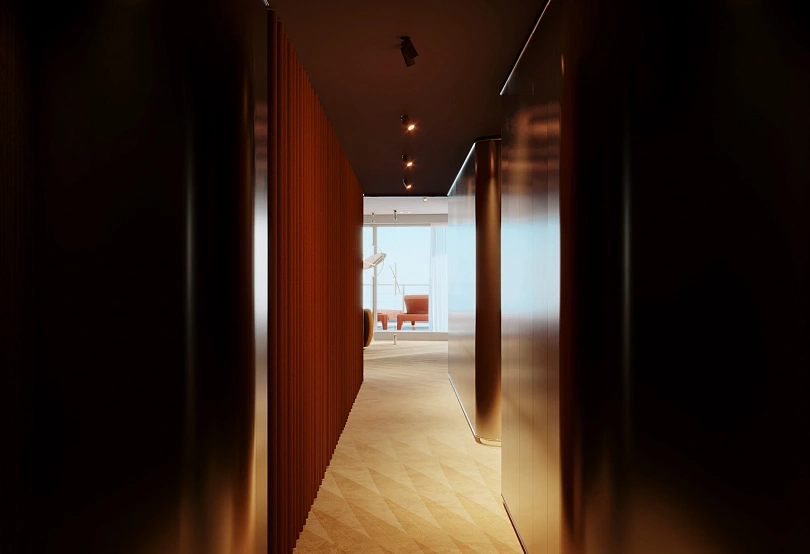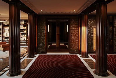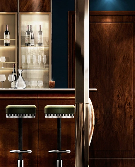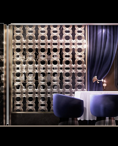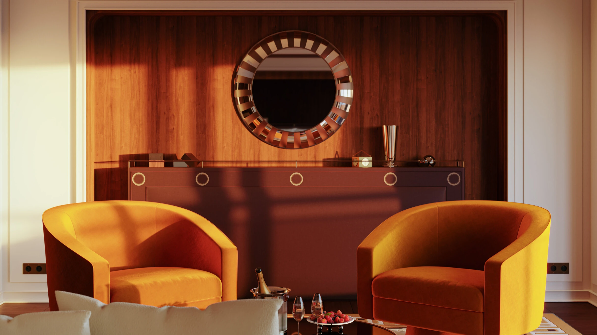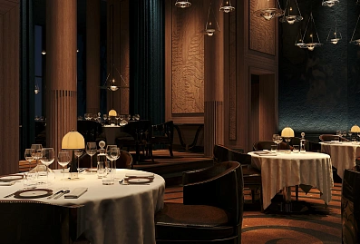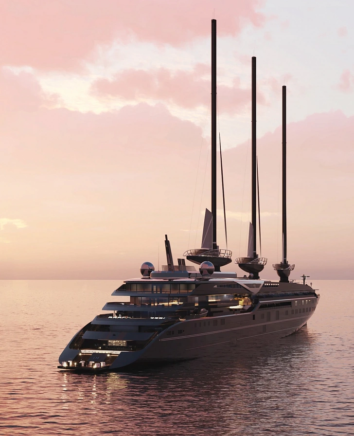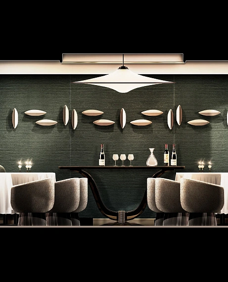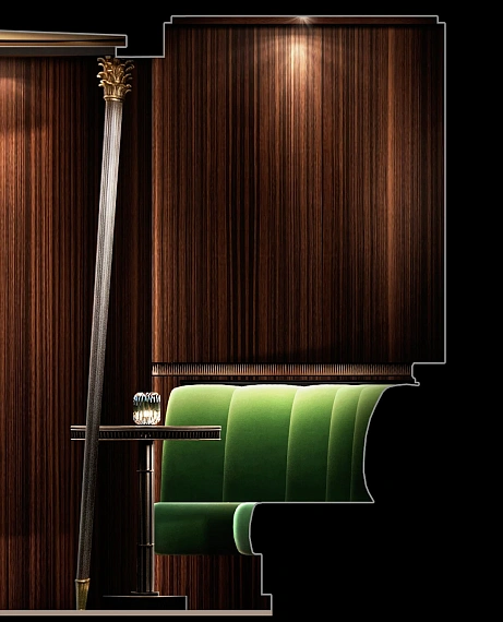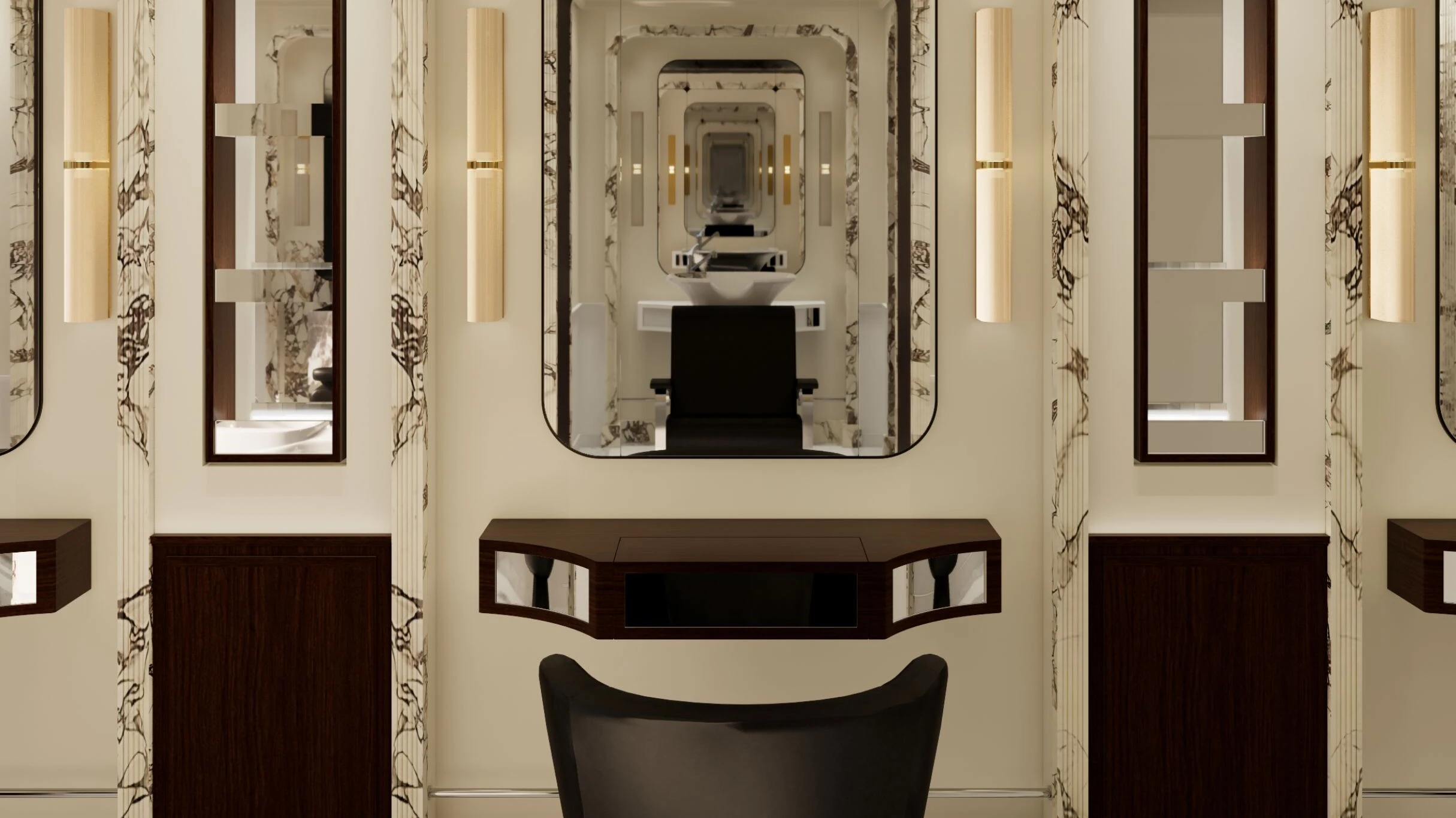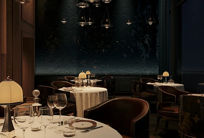 Интерьеры созданы архитектором Максимом д’Анжаком: это ар-деко в его современной интерпретации. Атмосфера вдохновлена Французской Ривьерой 1920–30-х годов, когда Монте-Карло, Сен-Тропе и Кап д’Антиб были пристанищем писателей, художников, актеров и принцесс — тот же легкий блеск беззаботности и joie de vivre, только теперь не на берегу, а под парусами.