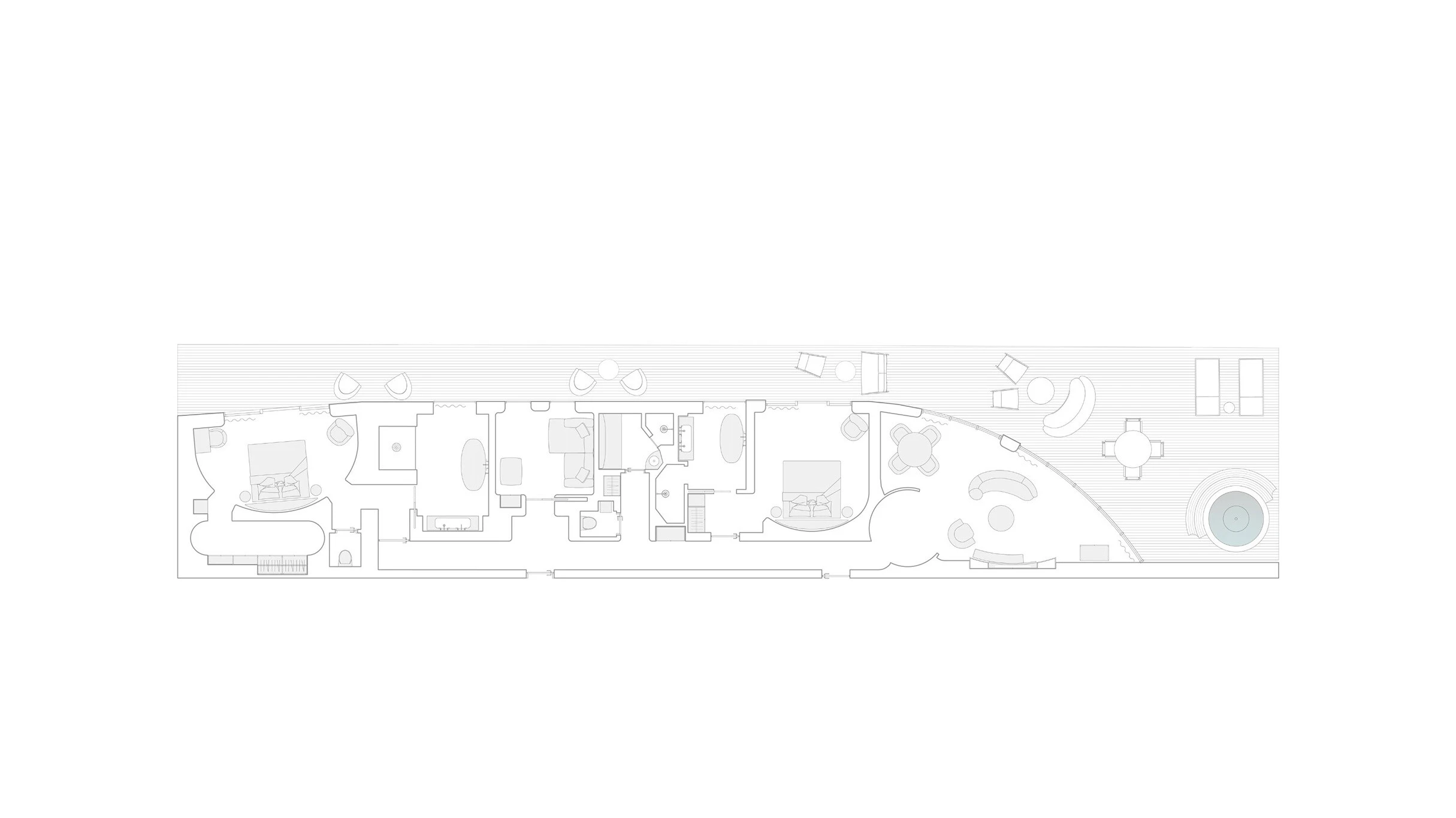 Номер с двумя спальнями, гостиной и отдельной столовой. Большая терраса с джакузи.