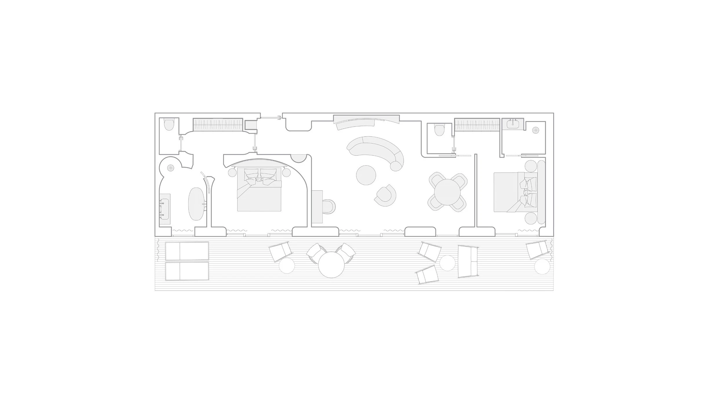 Номер с двумя спальнями, просторной гостиной зоной и отделанной мрамором ванной комнатой. Приватная терраса открывает панорамные виды на океан.
