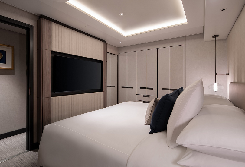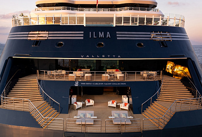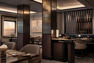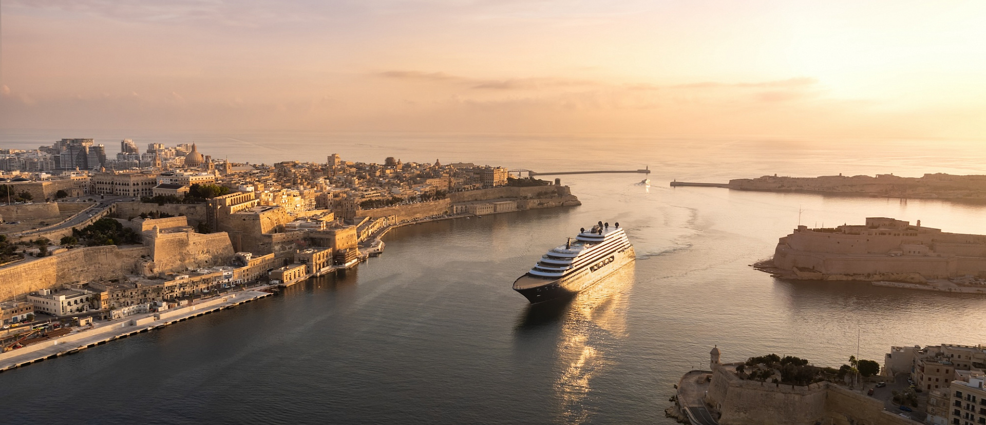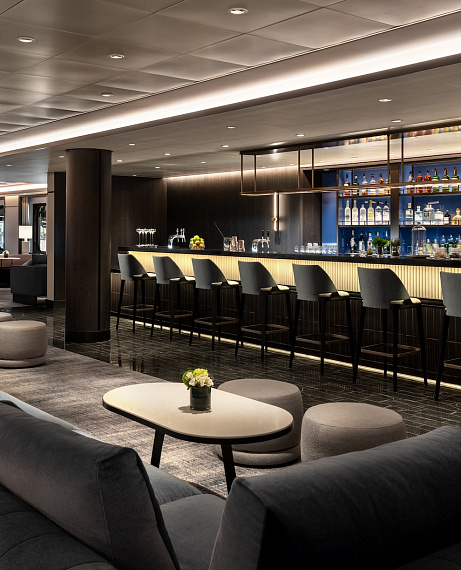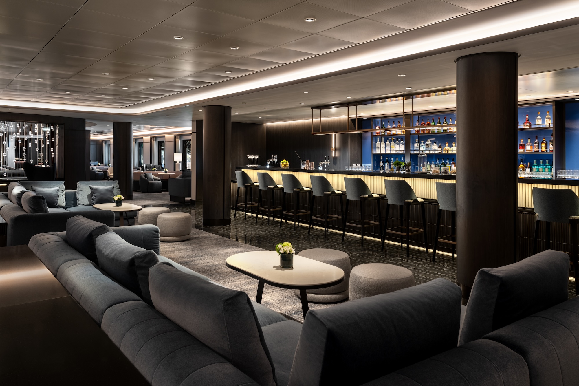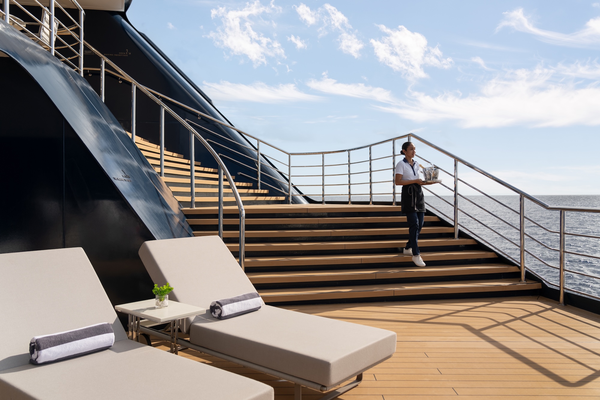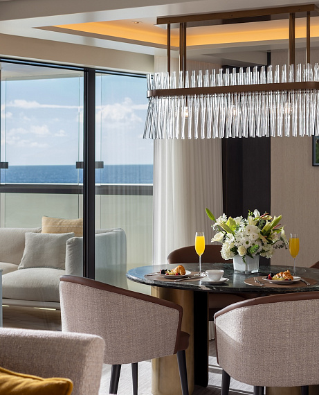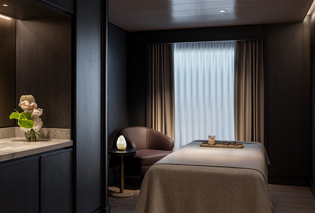 На борту 224 сьюта, каждый с приватной террасой и панорамными окнами. Пространство спроектировано так, чтобы море было частью интерьера: открытые лаундж-зоны и марина у самой воды создают ощущение частного курорта, а не круизного лайнера.