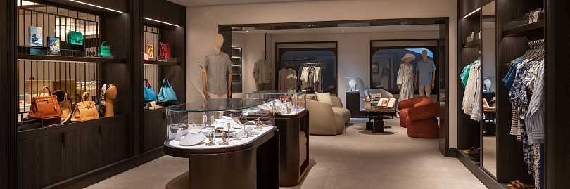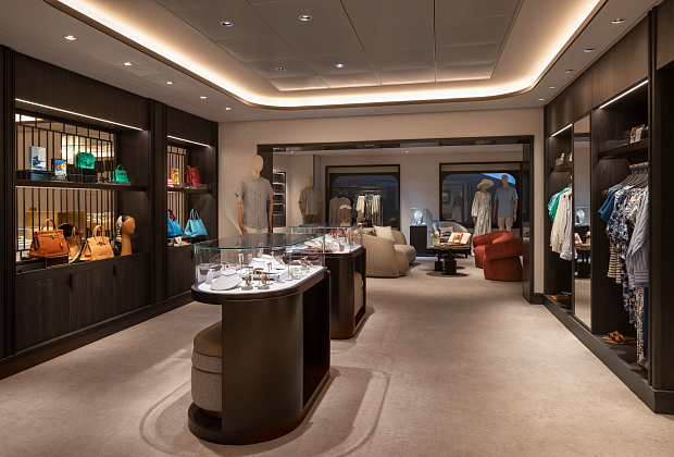 Коллекция спортивной и дизайнерской одежды, украшений и аксессуаров. В отдельных рейсах появляются коллаборации с местными мастерами, вдохновленные регионами, в которых останавливается яхта.